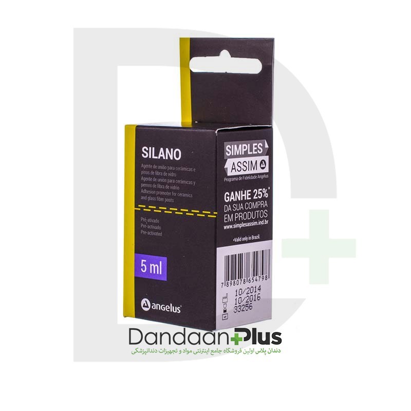 سایلن پرسلن برند انجلوسبرای چسباندن و اتصال هر چه بهتر رستوریشنهای سرامیکی کاربرد دارد. همچنین از این محصول میتوان برای چسباندن پستهای فایبر گلاس نیز استفاده کرد. از دیگر کاربردهای سایلن پرسلن انجلوس استفاده از آن به عنوان پرایمر است. از این محصول میتوان به عنوان پرایمر برای آمادهسازی سطوح سرامیکی قبل از ترمیم با کامپوزیت غیر مستقیم و قطعات پرسلنی استفاده کرد.مشخصات سایلن پرسلن انجلوساین محصول در بطریهای 5 میلیلیتری به فروش میرسد. سایلن پرسلن انجلوس ساخت کشور برزیل بوده و کیفیت فوقالعاده بالایی دارد. ماندگاری سایلن پرسلن انجلوس دو سال است.مزایا سایلن پرسلن انجلوسمهمترین مزیت این محصول، قیمت مناسب و به صرفه در برابر کیفیت بالای آن است. همچنین از دیگر مزایای سایلن پرسلن انجلوس میتوان موارد زیر را نام برد:کاهش میزان تبخیر مواد به دلیل وجود حلال بر پایه اتانولقدرت چسبندگی بسیار بالابدون نیاز به آمادهسازی در مطبصرفهجویی در وقتسهولت استفاده