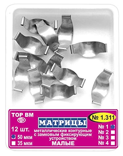 توضیحاتیکی از مهمترین ابزارهای دندان پزشکی که در روند ترمیم دندانها کاربرد زیادی دارد، نوار ماتریس است. با کمک ماتریس، مواد ترمیمی فشرده و متراکم میشوند و به این ترتیب، به پروسه ترمیم سرعت میبخشد.کیت ماتریس منحنی، شامل 5 حالت مختلف ماتریس برای پری مولار میباشد. این کیت از هر حالت ماتریس 6 عدد موجود دارد. سایز ماتریسهای این کیت هر کدام 55 میکرونی است.محتویات کیت ماتریس منحنی مولار:ماتریس منحنی بدون لج (6 عدد)ماتریس منحنی دو طرفه (6 عدد)ماتریس منحنی لج سمت چپ (6 عدد)ماتریس منحنی لج سمت راست (6 عدد)ماتریس منحنی لج مرکزی ( 6 عدد)• shape 1 (without ledge)6 pcs.• shape 2 (bilateral)6 pcs.• shape 3 (left ledge)6 pcs.• shape 4 (right ledge)6 pcs.• shape 5 (central ledge)6 pcs.