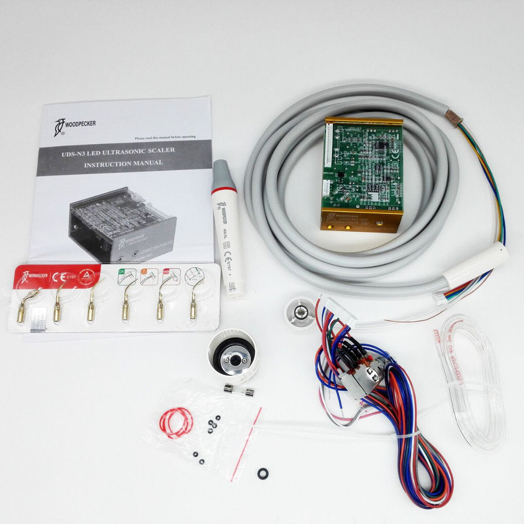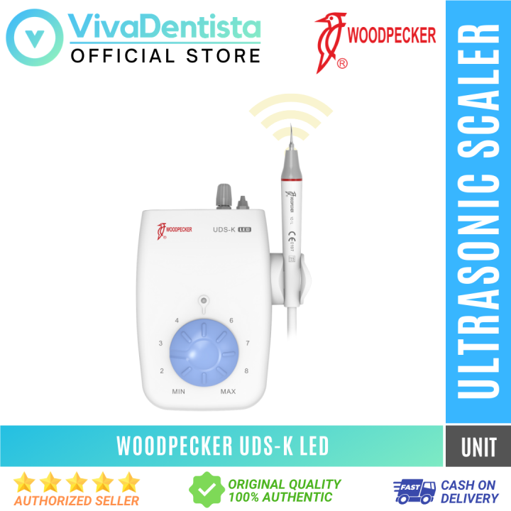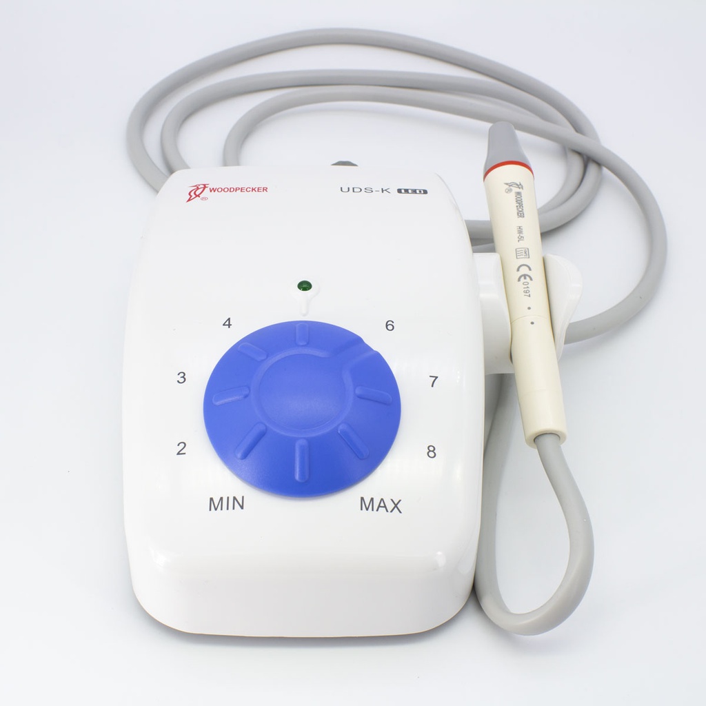 توضیحاتجرمگیر دندانپزشکی وودپیکر Woodpecker مدل UDSKجرمگیر وودپیکر Woodpecker مدل UDS-K دارای هندپیس جداشونده با قابلیت اتوکلاو میباشد.این دستگاه برای از بین بردن کامل جرم دندان مورد استفاده قرار میگیرد و با سرعت و بدون آسیب رساندن به لثه و دندان عمل جرم گیری را انجام میدهد و دارای بدنه و طراحی بسیار مقاوم و سخت است.کالیبراسیون خودکار فرکانس باعث می شود تا دستگاه جرمگیر وودپیکر همیشه با بهترین فرکانس و به طور پیوسته و بدون قطعی کار کند.این دستگاه جرم گیر دندانپزشکی از نوع پیزو الکتریک است.