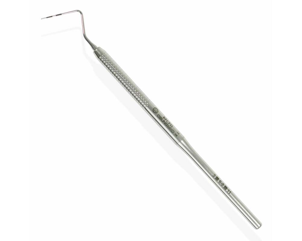 توضیحاتتوضیحات :دارای یکسر داسی و یکسر سوند اندو میباشد-مناسب برای معاینه و جستجوی حفرات پوسیدگی – مناسب برای تشخیص جرمهای دندانیکارایی:برای معاینه دندان و پیدا کردن حفرات پوسیدگی و جرم های دندانی و یا برداشتن پانسمان مورد استفاده قرار می گیرد.