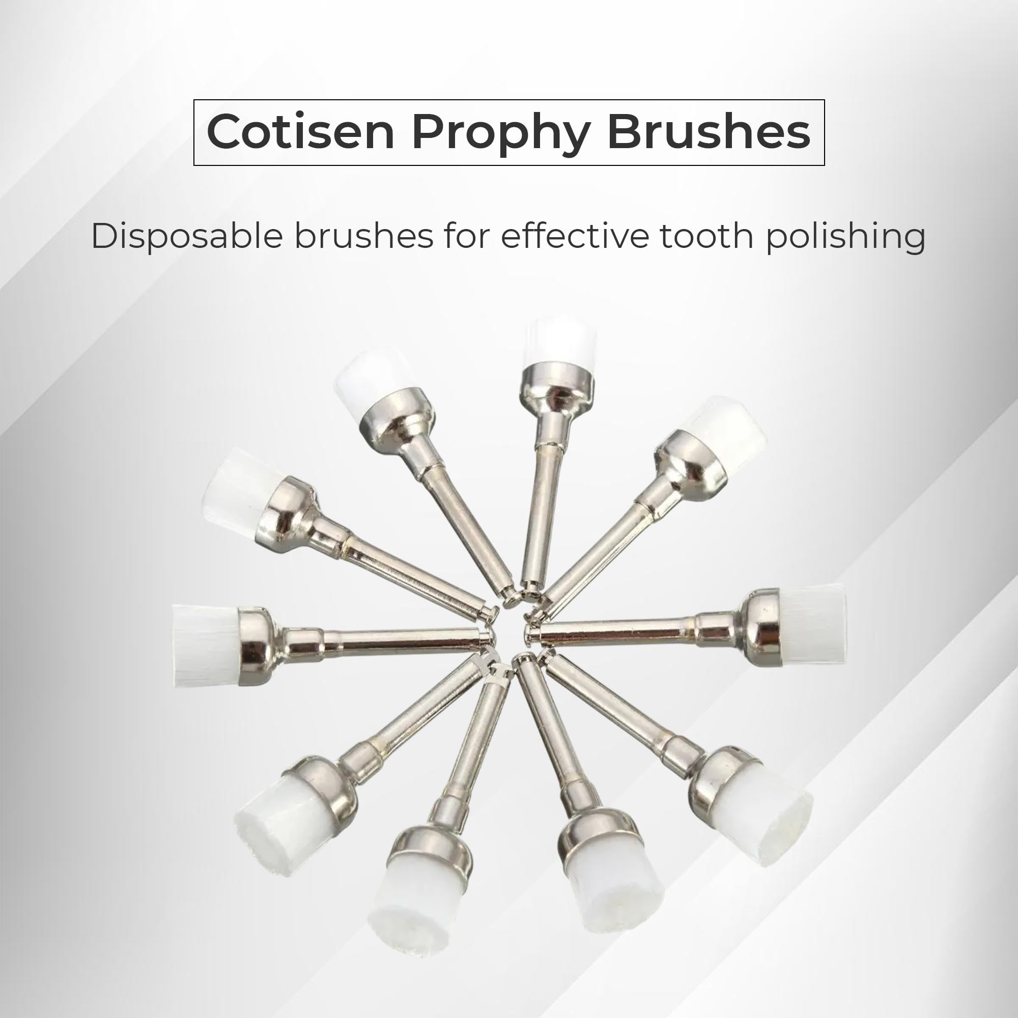 برس برساژ تک عددی - Prophy Brush:از رشته های نایلونی با کیفیت ایده آل به منظور از بین پردن پلاک ها از جمله پلاک چای ، قهوه و سیگار ساخته شده است.برای پولیش و تمیز کردن دندان های طبیعی ، طلا و آمالگام ایده آل است.پایه فلزی و سری انعطاف پذیر دارد.به همراه آنگل قابل استفاده است.برس برساژ تک عددی برند MicroDontدر دو شکل فنجانی توپر(کاپ) ، مخروطی (کونیکال) و دو رنگ سفید ، مشکی و با جنس نایلونی و قطر 5 میلی متر عرضه می گردد.