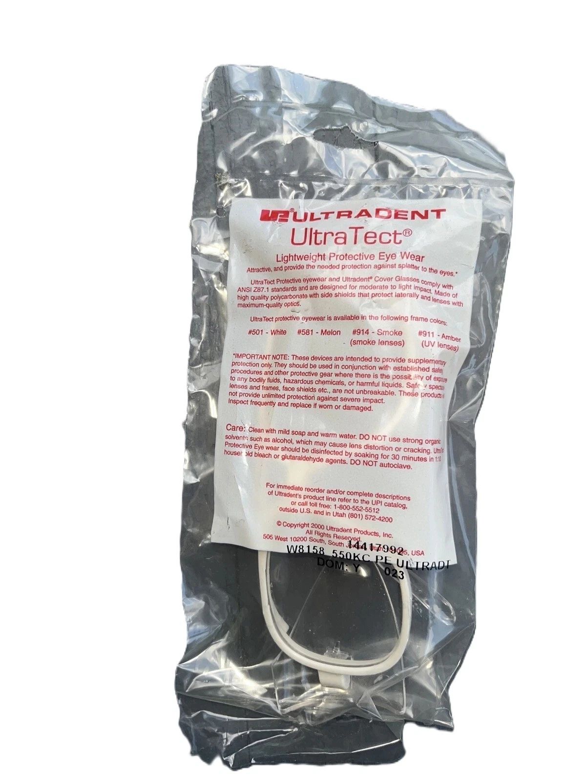 عینک سفید محافظ مواد دندانی Ultra Tect Protective Eyewear برند الترادنت Ultradent