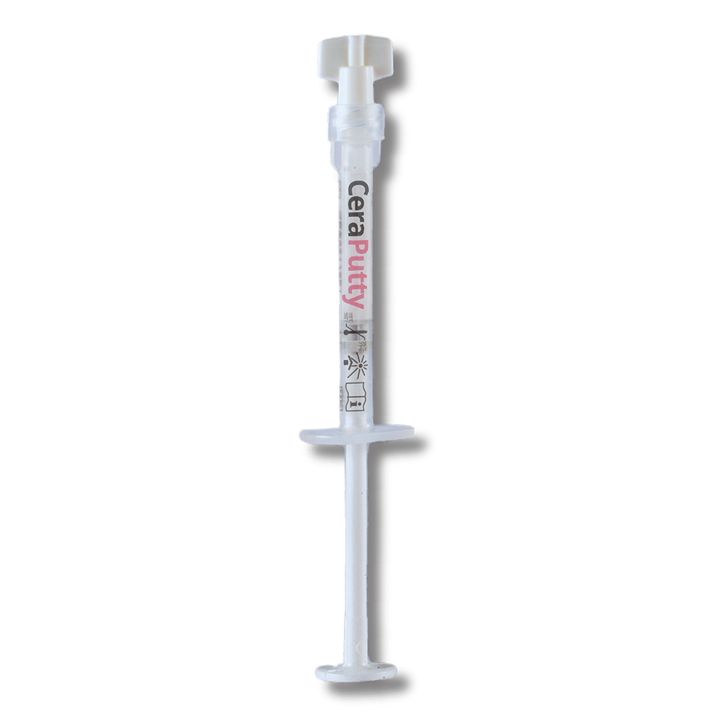 خمیر بایوسرامیک - Putty Ceram:خمیر از پیش مخلوط شده برای پر کردن کانال ریشه که با جذب رطوبت اطراف کانال ریشه سخت میشود. این محصول برای روشهای دندانپزشکی که شامل تماس با بافتهای پالپ زنده هستند، طراحی شده است. یعنی به عنوان پوشش پالپ مستقیم، پوشش پالپ غیرمستقیم، پالپوتومی جزئی، لاینر حفره، پایه حفره، پالپوتومی، اکسپوژر...همچنین برای درمانهای دندانپزشکی که بافتهای پری اپیکال را درگیر میکند شامل ترمیم پرفوریشن (Perforation)، درمان تحلیل ریشه، پر کردن ریشه، آپکسیفیکیشن، پرکردن انتهای ریشه، آپکسوژ نزیس، از بین رفتن جداره ریشه حین درمان (Stripping) حین درمانخمیر بایوسرامیک (Putty Ceram) در بستههای حاوی یک عدد سرنگ 1.5 گرمی در فروشگاه اینترنتی دندانت عرضه میشود.