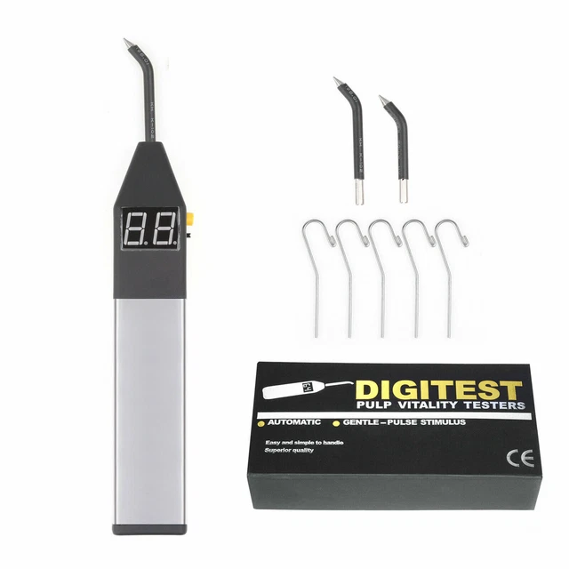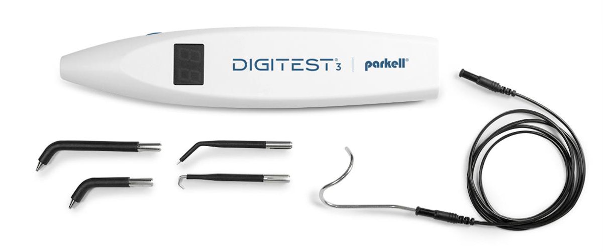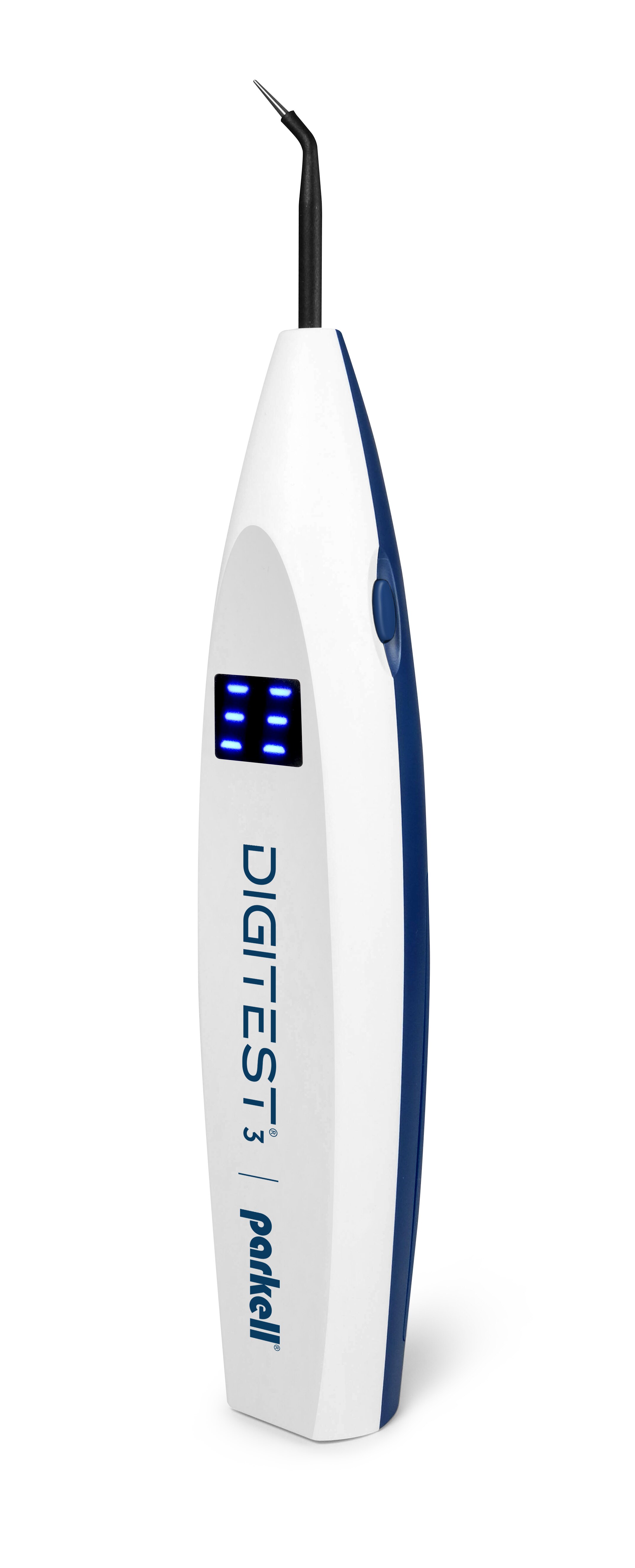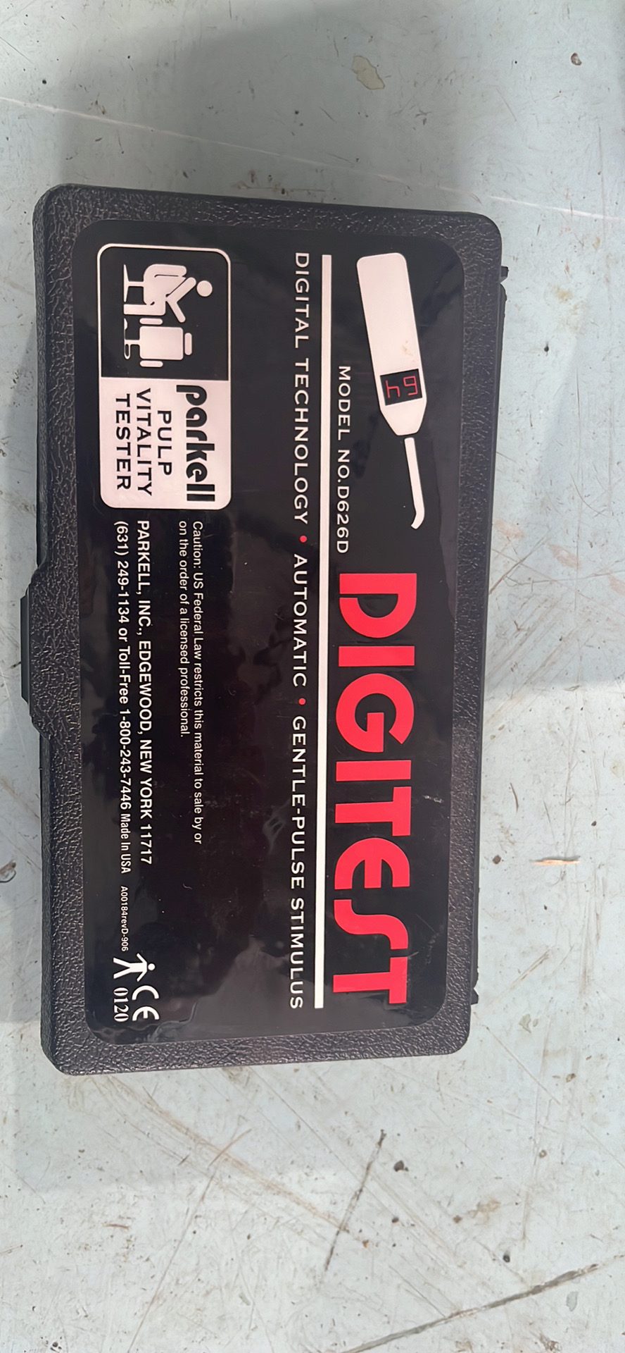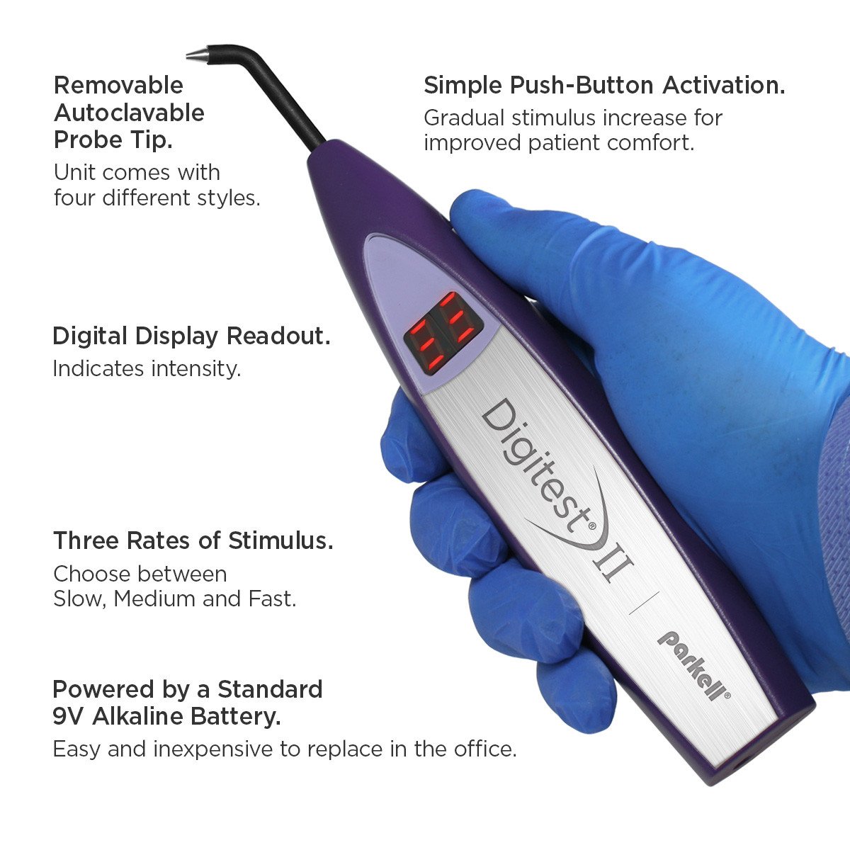 Digitest II Pulp Vitality Tester پالپ تستر دیجیتال پارکل آمریکادندانپزشکان برای درمان اندو یا عصب کشی به بررسی آسیب پالپ دندان نیاز دارند تا بتوانند زنده بودن پالپ دندان را بررسی نمایند. یکی از راه های انجام این کار استفاده از تست الکتریکی توسط دستگاهی به نام پالپ تستر می باشد. برای این کار دندانپزشک دستگاه را مقابل دندان قرار میدهد و جریان الکتریکی مشخصی را به وسیله دستگاه پالپ تستر به دندان وارد می نماید و در صورتی که الیاف عصبی دندان سالم باشند احساس مور مور شدن در شخص ایجاد میشود. اما اگر الیاف عصبی دندان سالم نباشند و آسیب دیده و مرده باشند، هیچ واکنشی در شخص ایجاد نمیشود. البته باید توجه شود که ممکن است به دلایلی در دندان سالم نیز واکنشی ایجاد نشود. در انجام این تست ابتدا با جریان خیلی کم کار شروع میشود و سپس به تدریج جریان افزایش مییابد. در هنگامی که اولین علامت واکنش به دستگاه مشاهده شود، تستر بلافاصله باید از محل مورد نظر دور شود.ویژگی های پالپ تستر دیجیتال پارکل آمریکاپالپ تستر پارکل Parkell مدل Digitest ll ساخت کشور آمریکا می باشد.این دستگاه دارای صفحه نمایش دیجیتال می باشد.باتری قلیایی ۹ ولت با قابلیت تعویض آساناین دستگاه دارای عملکرد کاملاً خودکار است.قابلیت انتخاب سرعت کند، معمولی و تند (Slow-Medium-Fast ) دارد.به صورت خودکار خاموش میشود.دارای ۴ عدد پروب قابل اتوکلاوپروب های: Posterior، Anterior ، Labial ، Lingualدارای کالیبراسیون خودکار.دارای میکروپروسسورهایی که هر بار با انجام یک تست عملکرد مناسب دستگاه را بررسی می کنند.این دستگاه دارای استانداردهای FDA آمریکا، CE اروپا و ISO می باشد.یک سال گارانتی تعمیر و ۱۰ سال خدمات پس از فروش.