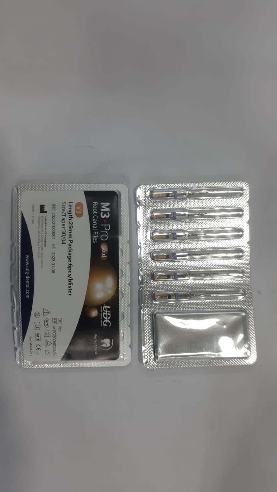ویژگیهای فایل روتاری پرو گلد ام-تریفایلهای روتاری که از اصلیترین ابزار روتکانال و درمان ریشه محسوب میشوند، تاثیر مستقیمی بر کیفیت کار و نتیجه درمان دارند. بههمین دلیل دندانپزشک نیاز به انتخاب فایلهای با استانداردهای بالا و ویژگیهای بهتر دارد. فایل روتاری ام-تری از این استانداردها و ویژگیها بهره میبرد. فایل روتاری پرو گلد ام-تری از انعطافپذیری، مقاومت و قدرت برش بالا بهره میبرد.مزایای فایل روتاری ام-تریفایل روتاری پرو گلد ام-تری از تکنولوژی پیشرفته در ساخت بهره میبرد. این فایلها از آلیاژ حافظهدار ساخته میشوند. به دلیل مقاومت بالا دربرابر شکستن و انعطافپذیری مناسب، تنوع در سایز و طول، برای کانالهای کرودار مناسبند.ویژگیهایفایل روتاری پرو گلد ام-تریاین است که برداشت دبری عاجی از کانال را تسهیل کرده و ترانسپورت یا لج داخل کانال ایجاد نمیکند. از فایل روتاری ام-تری میتوان همراه انواع موتور و آنگل استفاده کرد. ضمن اینکه هر فایل روتاری ام-تری بطور متوسط ۱۵ الی ۲۰ کانال را میتواند بدون شکستن پاکسازی نماید.
