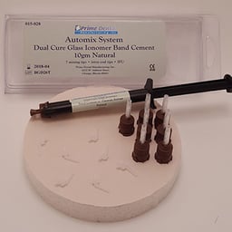 سمان اتومیکس گلاس آینومر دوال کیور - Dual Cure Glass Ionomer Band Cement:یک سمان رزینی کامپوزیت دوال کیور، ایدهآل برای سمان کردن باندهای فلزی مولر. به صورت شیمیایی به ساختار دندان و باند فلزی باند میشود تا یک آنکور قوی ایجاد کند. تکنولوژی گلاس آینومر، استحکام تنسایل و کامپرسیو بالایی ایجاد میکند و واشاوت و لوز شدن باندها را کاهش میدهد. سمان، هنگامی که به صورت ایدهآل میکس شود، بوی قوی یا آفترتیست نامطبوعی ندارد. ادهزیو را میتوان لایت کیور کرد تا باند بلافاصله در جای خود ست شود. بدون اکتیویشن نوری، یک ست کامل در پنج دقیقه حاصل میشود. حاوی فلوراید برای محافظت بیشتر از دندان است. به راحتی از سرنگهای اسکرو مقرونبهصرفه یا سیستم اتومیکس هوشمند توزیع میشود.سمان اتومیکس گلاس آینومر دوال کیور برند پریم دنت (Prime Dent) ساخت امریکا در بستههای حاوی یک عدد سرنگ اتومکیس 10 گرمی (5 گرم بیس+5 گرم کاتالیزور) با رنگ طبیعی (Natural) - 5 عدد میکسینگ تیپ - 5 عدد اورال تیپ عرضه میشود.