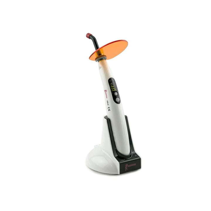 توضیحاتلایت کیور LED بی سیم وودپیکر WOODPECKER مدل LED.Hلایت کیور LED بی سیم وودپیکر Woodpecker مدل LED.H ساخت کشور چین می باشد.مطابق با استانداردهای TUV آلمان، CE اروپا، FDA آمریکا و ISO ساخته می شود. تغذیه و توان آن AC 100/240 V, 50/60 Hz / DC 5 V می باشد. این دستگاه تنها با یک بار شارژ بیش از 400 بار قابلیت استفاده دارد. این دستگاه دارای آلارم باطری می باشد. لایت کیور دارای محافظ گرمایی و محافظ چشمی است. بدنه دستگاه از جنس فلزی ساخته شده است.مشخصات و ویژگی های فنی:قابلیت خاموش شدن به صورت خودکارپهنای باند اشعه خروجی 420 – 480 (nm)باتری لیتیوم یون شارژی 2200 میلی آمپروزن 178 گرممجهز به صفحه نمایش دیجیتالعمق و زمان کیور 3 میلیمتر در 10 ثانیهدارای هشدار صوتیپروب دستگاه 8 میلیمتردارای قابلیت اتوکلاو ابلقطر هندپیس 25mm و ارتفاع 252mmزمان کاری دستگاه 40 – 5 ثانیهمودهای کاری دستگاه به صورت Full ، Ramp ، Pulseتوان اشعه خروجی 1200 (mw/cm2)و دارای لامپ LED با عمر بالالایت کیور LED بی سیم وودپیکر یکی از تجهیزات دندانپزشکی و جزء تجهیزات عمومی دندانپزشکی است .از موادی که برای پر کردن دندان استفاده می شود کامپوزیت ها هستند. پس از قرار دادن کامپوزیت بر روی دندان لازم است که از دستگاه لایت کیور جهت سفت كردن كامپوزيت استفاده شود.لایت کیور باعث سخت و پلیمریزه شدن مواد دندانی مثل کامپوزیتها، سیلانتها و سمانها در محیط دهان میشود . از این دستگاه نوری ساطع می شود ، که همین نور سبب خشک کردن ماده مورد نظر می گردد .