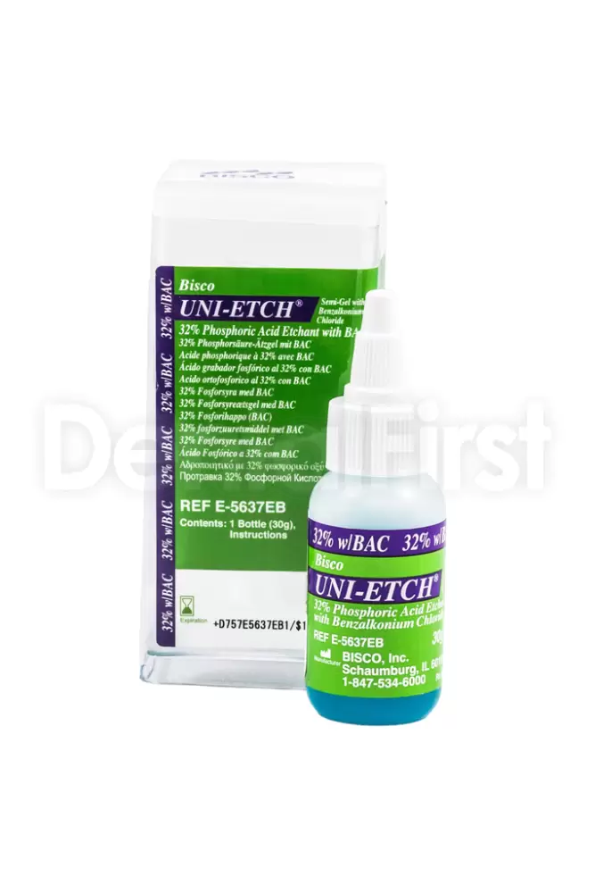 توضیحاتاسید اچ یکی از محصولات پرکاربرد در دندان پزشکی است .این محصول مناسب برای اچ کردن مینای دندان وافزایش انرژی سطحی آن است که موجب میشود تا کامپوزیت بهترچسبانده شود .اسيد فسفريك 32% با آنتی باکتریال بیسکو دارای فیلر پلیمری که دارای خواص تیکسوتروپیک است و حالت نیمه ژلاتینی دارد و بنزالکونیوم کلراید که عامل آنتی باکتریال است.به دلیل نداشتن فیلر سیلیکای بر روی سطح اچ شده به هیچ عنوان رسوب نمی کند .این محصول موجب افزایش قدرت باندینگ به مینا و عاج (خشک و مرطوب) می شود .از ویژگی های این محصول می توان به ویسکوزیته بسیار خوب و مناسب در حین کار اشاره کرد و همچنین این محصول دارای قابلیت نفوذ آسان و راحت به کانال های ریشه و نواحی دور از دستر س می باشد و میتوان در حین استفاده از باندینگ های سلف اچ از این محصول برای اچ کردن لبه های مینایی به صورت نقطه ای استفاده کرد .استفاده از این محصول بسیار آسان است و به راحتی قابل شستشواست وبه سادگی میتوان آن را حذف کرد