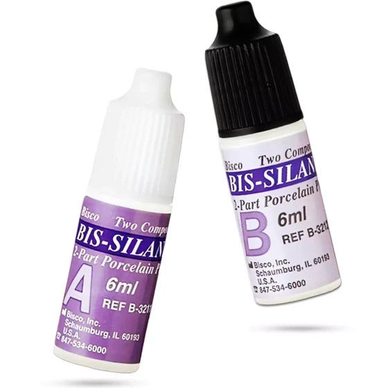معرفی سایلن بیس بیسکوکیفیت و مقاومت باندیگ پرسلن و رزین در ترمیمهای دندانی بسیار اهمیت دارد. سایلنها نقش یک چسب قوی و اطمینان بخش را در این نوع ترمیمها بازی کرده و اتصال مدنظر دندانپزشک را ایجاد میکنند.سایلن بیسکوکه با عنوان سایلن-بیس بیسکو شناخته میشود مانند تمام دیگر محصولات کمپانی معتبر بیسکو، از بهترین سایلنهای موجود در بازار محسوب میشود که با تکنولوژی جدید خود کار را برای دندانپزشک بسیار سادهتر و سریعتر پیس میبرد.کاربرد سایلن بیسکوسایلن بیسکو مقاومت ناحیه باند شده را نسبت به رطوبت افزایش داده و مدت نگهداری و ثبات را نیز بیشتر میکند. موثرتر کردن چسبندگی سمان به لمینت و فایبرپست از دیگرخواص سایلن بیسکومحسوب میشود.ویژگیهای سایلن بیس بیسکوسایلن-بیس بیسکو به صورت دو بتری ۶ میلیلیتری ارائه میشود که نیاز به مخلوط شدن قبل از استفاده دارند. این ویژگی کمک میکند تا دندانپزشک همواره سایلن تازه دراختیار داشته باشد. برای فعال کردن این سایلن لازم است که از هر بطری یک قطره باهم ترکیب شود.