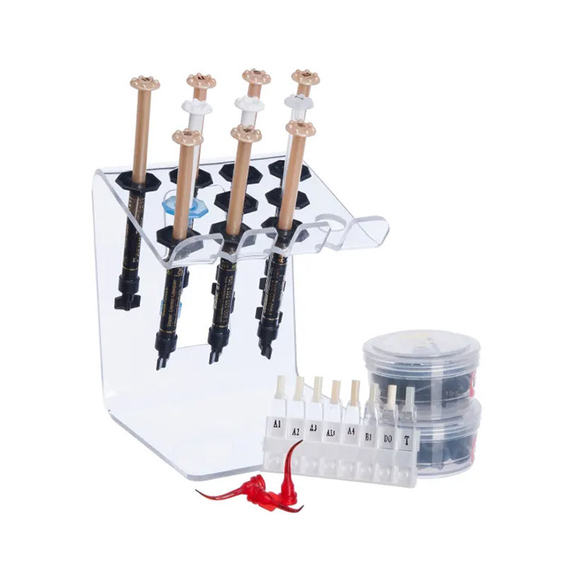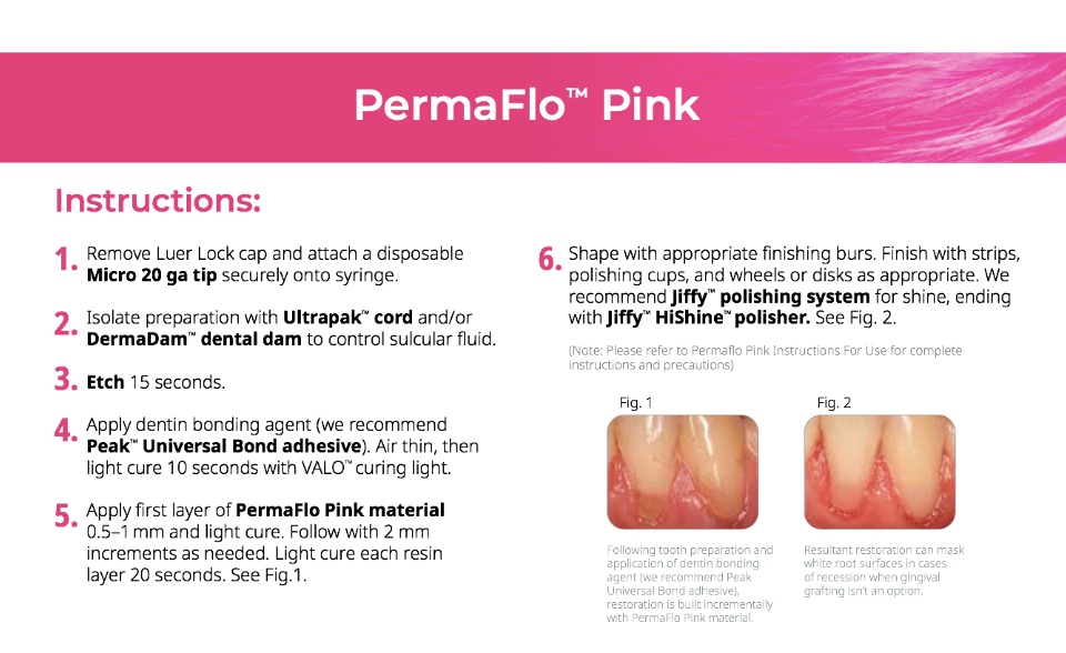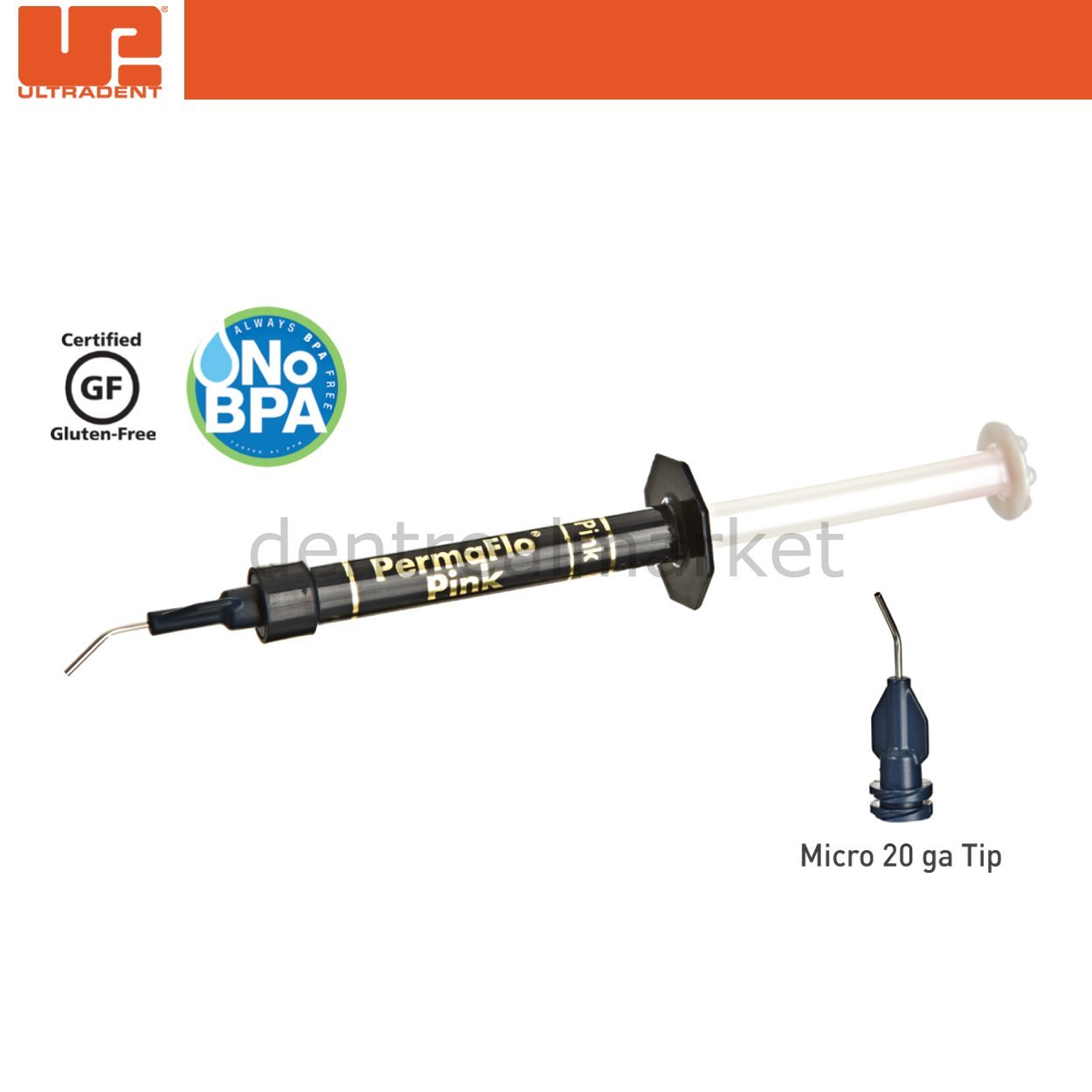 توضیحاتکامپوزیت (2 سرنگ ) ULTRADENT Perma Flo Pink ، كامپوزيتی صورتی رنگ می باشد که برای پوشاندن قسمتهای تحليلرفته لثه بيمار بکار می رود.همچنین مناسب برای پوشاندن ریشه اکسپوز شده دندان به دلیل تحلیل لثه است.و از این کامپوزیت می توان برای ترمیم دندان های شیری ، ثابت کردن دندان های لق و یا به عنوان بیس و لاینر در ترمیم های کامپوزیتی نیز استفاده کرد.