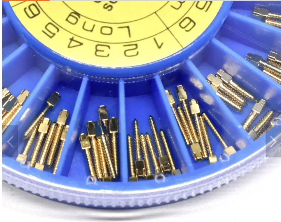 پین طلایی -Gold Plated Dental Post:یک سیستم حمایتی برای ترمیم دندانهای اندو شدهای میباشد که در اثر پوسیدگی زیاد، تاج کافی ندارند.پین طلایی سبب استحکام و بهبود ساختار دندان میشوند.پینهای کوچکی هستند که مانند یک ستون فشار وارده به تاج را به ریشه منتقل میکنند تا احتمال شکسته شدن دندان پایین بیاید.دارای سایزبندی S,M,L از 1 تا 6 میباشد.پین طلایی برند دنکودر بستهبندی 50 عددی عرضه میگردد.