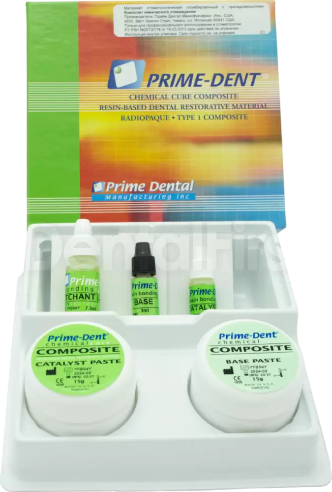 کیت کامپوزیت سلف کیور - Self Cure Composite KIt:این کامپوزیت را میتوان به عنوان یک لایه Base در محل آمادهسازی حفره تا قسمت مینا-عاج متراکم کرد یا برای ترمیم کامپوزیت خود درمان کامل تا حاشیه سطح حفره (cavo-surface margin) پر کرد. از سایر ویژگیهای ممتاز این محصول میتوان به عدم چسبندگی آن قلم، مقاومت فشاری 270 مگاپاسکال (MPa) و حلالیت بسیار پایین آن در آب اشاره کرد.کیت کامپوزیت سلف کیور از برند پریم دنت (Prime Dent) در بستههای حاوی 15 گرم کاتالیست + 15 گرم بیس + 3ml کاتالیست باندینگ + 7.5ml مایع اچ + میکسینگ پد + پک قلم کامپوزیت و براش در فروشگاه اینترنتی دندانت عرضه میشود.