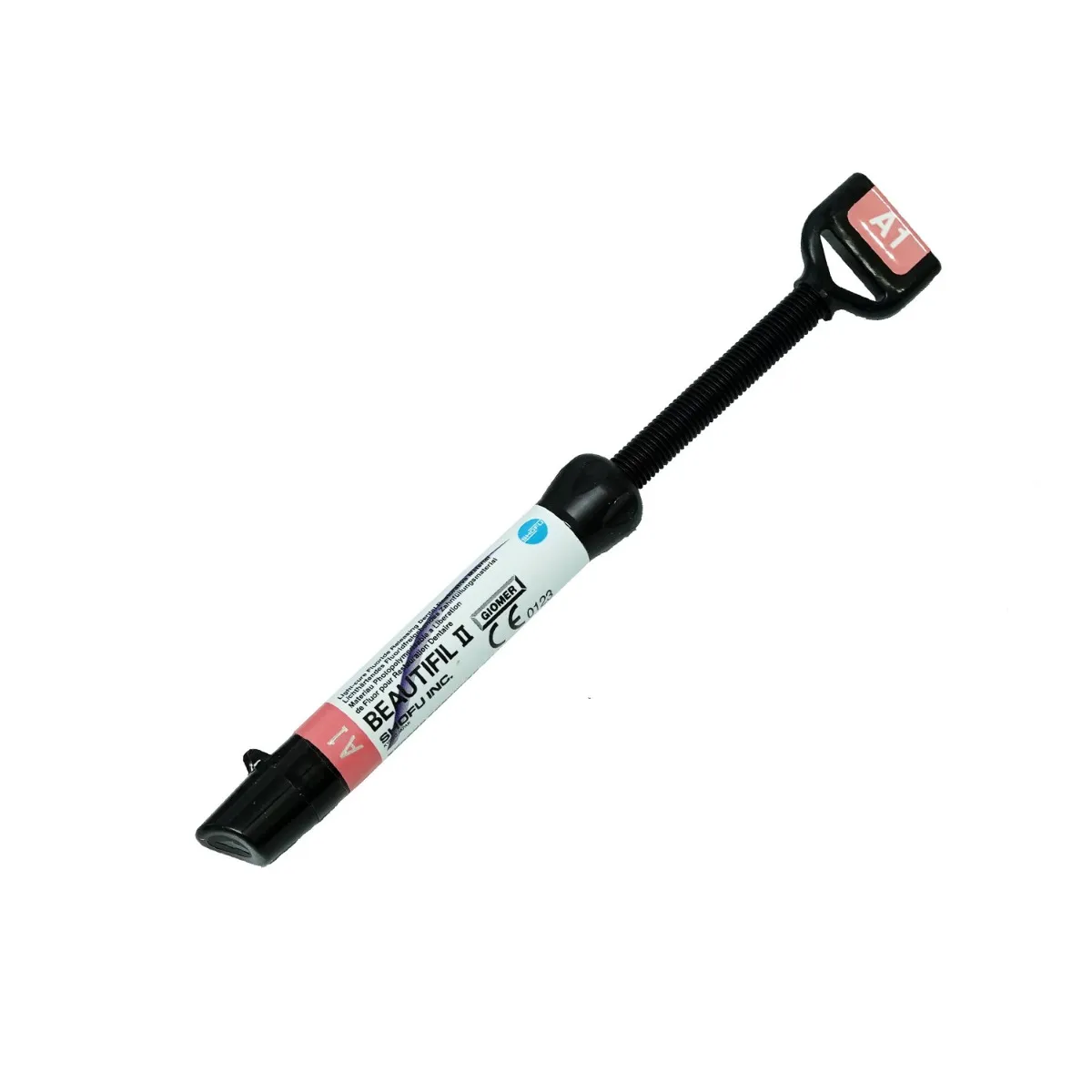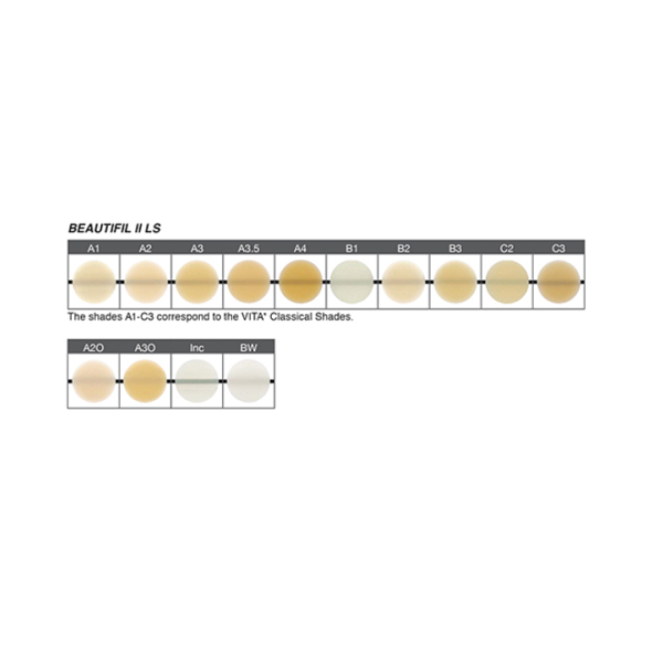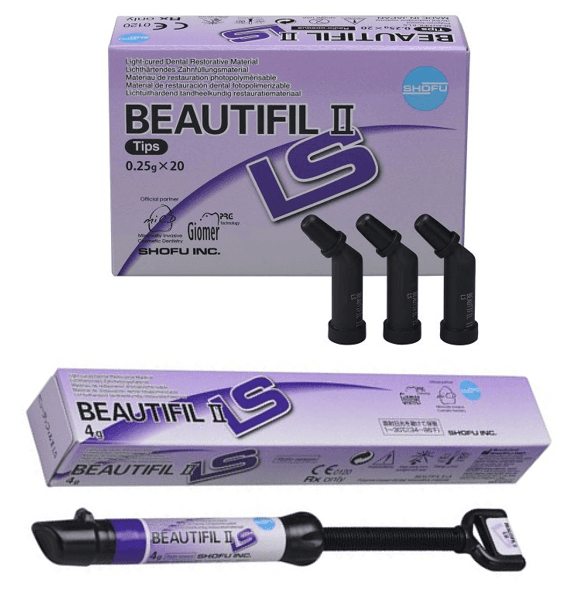 برجسته با زیبایی بالا، پایداری طولانیمدت و پیشگیری پایدار از پوسیدگی برسیم.دستیابی به نتایج عالی با زمان و تلاش کمبه لطف قوام stackable و نچسب بودن، این کامپوزیت را می توان به راحتی و به سرعت فرم داده و با ساختار دندان تطبیق داد. Beautifil II LS به دندانپزشکان اجازه می دهد تا به ترمیم های برتر با زیبایی و عملکرد طولانی مدت دست یابند. این کامپوزیتها در سرنگهای کاربرپسند با درپوشهای یک لمسی «one-touch caps» یا در نوکها «tips» عرضه میشود.ساختار GIOMER:بر اساس فناوری (PRG (Pre-Reacted Glass-ionomer یک فاز پایدار از گلاس آینومر تشکیل میشود تا بدون ایجاد تخریب مواد مزایای بیشتری مانند آزادسازی فلوراید و شارژ مجدد را در مواد ترمیمی ایجاد کند.آزادسازی و شارژ مجدد فلوراید:فیلر (S-PRG (Surface Pre-Reacted Glass-ionomer حاوی فاز پایدار گلاس آینومر با قابلیت آزادسازی و شارژ مجدد فلوراید است که به غلظت فلوراید در دهان پاسخ می دهد و در عین حال استحکام و پایداری رزین کامپوزیت را حفظ می کند.ویژگیهای نوری:Beautifil II LS به لطف فناوری فیلر منحصر به فرد خود، اثرات انتقال نور و انتشار انامل و دنتین را تقلید می کند. این سازگاری کامل به دندانپزشکان اجازه می دهد تا ترمیم هایی با ویژگی های نوری دندان های طبیعی ایجاد کنند.انعکاس نور طبیعی و حفظ درخشندگی:این کامپوزیت یونیورسال رادیواپک زیبایی را تا حد زیادی افزایش می دهد: استفاده از فیلرهای شیشه ای چند منظوره و فیلرهای کامپوزیت پیش پلیمریزه شده،