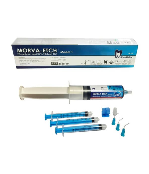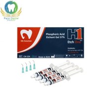 توضیحاتمعرفی:H1 یک ژل اسید اچ حاوی 37 درصد اسید فسفریک است که جهت اچینگ مینا و آماده سازی عاج دندان به هنگام اعمال سیلنت ها، ترمیم های کامپوزیتی و لوتینگ ترمیمهای کامپوزیتی و یا سرامیکی غیرمستقیم استفاده میشود.کاربردها:ترمیمهای کامپوزیتی مستقیمسیلنتهای پیت و فیشورترمیمهای غیرمستقیم مانند کامپوزیت و یا سرامیکهای عاری از فلز و سمانهای چسبی.مزیتها:رنگ آبی برجستهاعمال آسانشستشوی آسانترکیبات:اسید فسفریک، آب خالص، تغلیظ کننده و رنگ.روش استفاده:دندان را ایزوله کرده و حفره را با احتیاط آماده کنید.سرسوزن یکبار مصرف را پس از برداشتن درپوش متصل کنید.به مدت 10 ثانیه، مینا و عاج دندان را به ژل اسید اچ آغشته کنید. ژل را کاملاً بشویید و آب اضافی را به مدت 10 ثانیه با یک جریان ملایم هوا حذف کنید.اچ–وان: اسید فسفریک 37%ترکیبات:اسید فسفریک 37%، غلیظ کننده با پایه گلایکول30%، گلیسرین 10%، سیلیکات سنتزی 10%، شوینده 1%، آب.زمینه کاربرد:ژل اسید اچ جهت فرایند اچ کردن مینای دندان وعاج بکار می رود.در تمیز کردن سرامیکهای هیبرید.درکامپوزیتهای کیورد جهت چسباندن رستوریشن های ترمیمی بکار می رود.جهت ارتقا قدرت چسبندگی بین باندینگ، پرایمر و پرکننده ها و سطح دندان.جهت درمانهای ارتودنسی و تزیینی بروی دندان.مزایا محصول:قابلیت شستشوی آسان.گرانروی مناسب و بدون تاثیرات جانبی نظیر حساسیت دندان.بسته بندی مناسب جهت کاربرد و نگهداری بهینه.روش استفاده:سطح دندان را تمیز و خشک کنید. ژل اچ را بروی سطح دندان (دنتین و انامل) به مدت 30-15 ثانیه قرار دهید تا زمانی که در نتیجه فعالیت اسید سطح مورد نظرظاهری یخ زده پیدا می کند.فرایند اچینگ کامل: طی این فرایند ژل اچ همزمان بروی سطح انامل و دنتین قرار داده می شود (15-30 ثانیه). این تکنیک زمانی کاربرد دارد که قرار است مقدار قابل توجه ای مواد باندینگ بروی بروی دندان قرار داده شود. همچنین فرایند اچ کامل زمانی بکار می رود که آماده سازی دندان بصورت عمیق یا نزدیک پالپ صورت نگرفته باشد.فرایند اچینگ انتخابی: فرایند مشابه روش بالا اجرا می شود بجز اینکه ژل فقط بروی انامل قرار داده می شود. این روش با هدف جلوگیری ایجاد حساسیت بروی دندان و اجرای فرایند حساسیت زدایی بعدی صورت می گیرد.فرایند سلف اچ: طی این فرایند اسید اچ و مواد باندینگ با هم مخلوط شده و به صورت لایه ای بروی سطح دندا