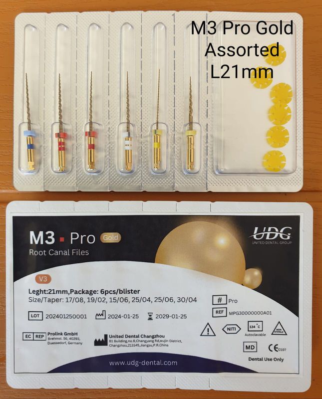 توضیحات✔ بسته بندی : 6 عددی فایل با سایزهای مختلف شامل (10*4% | 10*6% | 15*4% | 15*6% | 20*4% | 20*6% | 25*4% | 25*6% | 30*4% | 30*6% | 35*6% | 40*4% | 17*8% | 17*12% | 35*4% | )✔ سرعت: 300 الی 350 دور در دقیقه✔ تورک: 2/5 الی 3 نیوتن – سانتی متر✔ خصوصیات: تکنیک پیشرفته در ساخت فایل با استفاده از وایرهای CM Wire✔ مناسب برای آماده سازی کانال و درمان اندو✔ قابل استفاده به همراه انواع اندو موتورهای استاندارد✔ Flexibility و Cutting Effect موثر که استفاده از فایل را در انواع کانال های کرو دار و معمولی راحت می کند.✔ تنوع در سایز و طول✔ مقاومت بالا در مقابل شکست Cyclic Fatigue✔ رنگ طلایی تیره فایل به دلیل Heat Treatment ایجاد می شود.
