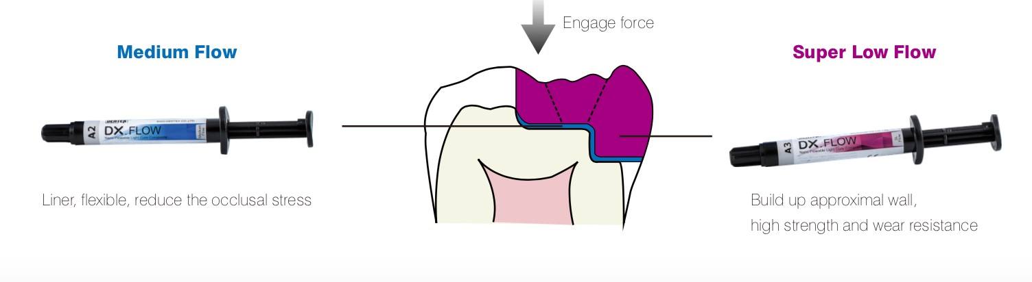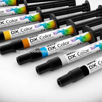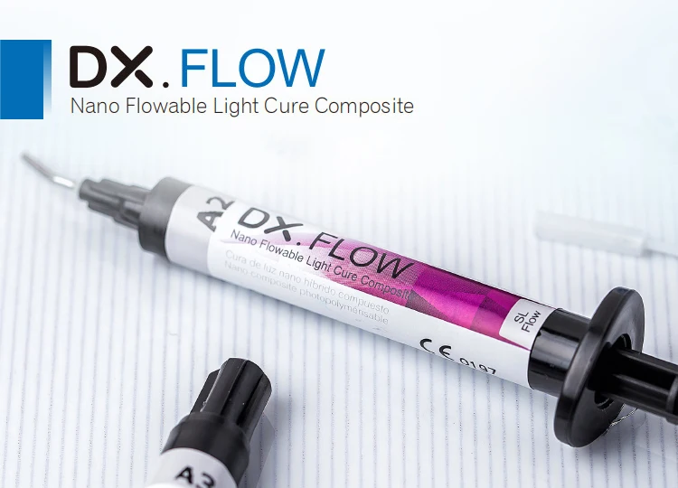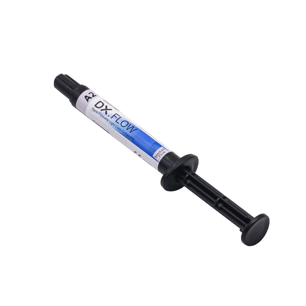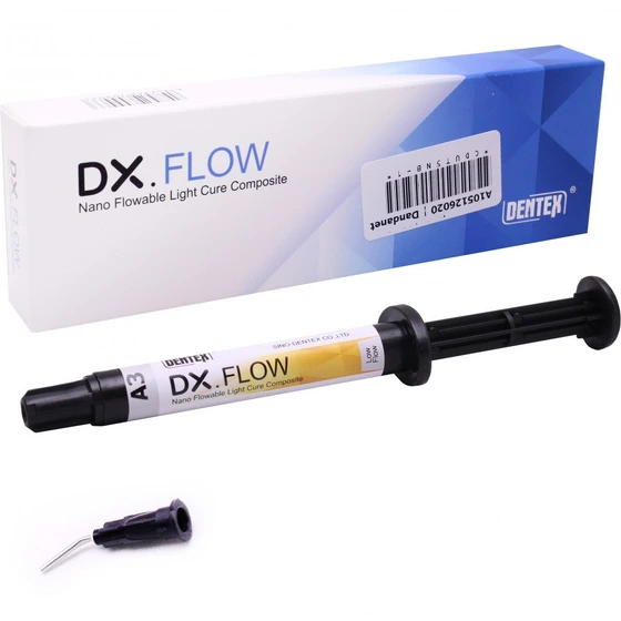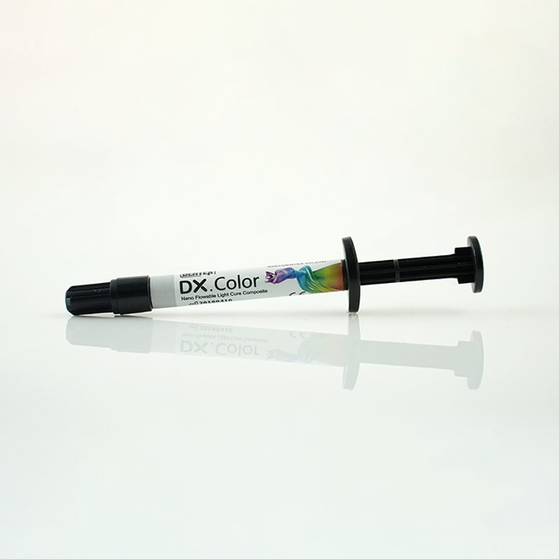 کامپوزیت تینت رنگی - DX Flow Color:این کامپوزیت رنگپذیری خوب و پایداری رنگ عالی داشته و ازایجاد ترک های ظاهری و افکت های داخل عاجی جلوگیری میکند. همچنین نانوهیبرید، رادیو اپک، استحکام بالا و پولیش پذیری عالی است و شامل همه کلاسها در ترمیم مستقیم دندانهای قدامی و خلفی استکامپوزیت تینت رنگی ( DX Flow Color) از برند Dentex در 8 شید رنگی Blue - Black - Crimson - Milky - Orange Brown - Clear - Yellow و Brown در بستههای یک عدد سرنگ 1.5 گرمی + 5 عدد تیپ در فروشگاه اینترنتی دندانت عرضه میشود.