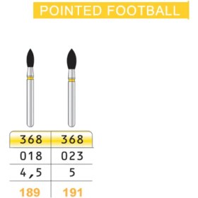توضیحاتفرز الماسی توربین تراش 4.5 / 5 میل POINTED FOOTBALL 368 تیزکاوان TEESKAVANبرای تراش با فینیش لاین چمفر هنگام تهیه روکش های فول متال یا متال سرامیک (PFM) کاربرد دارد.با قدرت سایندگی مختلف از خشن (Coarse) تا بسیار نرم(Superfine).درجه سایندگی با نوارهای رنگی روی بدنه فلزی را با استفاده از حروف اختصاری بعد از شماره فرز الماسی مشخص میشود.فرز های بسیار نرم برای اتمام ترمیم استفاده میشود.در سایز و طرح های مختلف در دسترس است.خرید فقط در بسته بندی های 4 عددی میباشد
