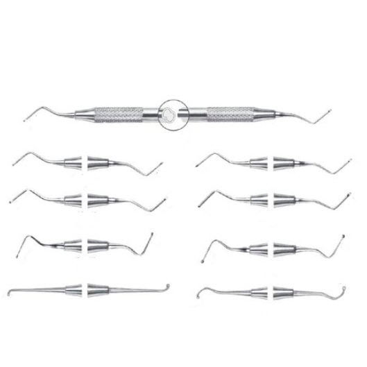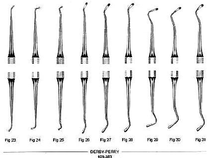 اکسکویتور - Darby Perry Excavator:این وسیله برای تراشیدن و برداشتن پوسیدگی (به طور خاص پوسیدگیهای عاج)، پانسمان موقت و مواد کم به کار میرود.برای جرمگیری دستی دندان کاربرد دارد و به شکل یک میله بلند با تیغه نازک و تیز است.وسیلهای با دوام بوده و برای مدت طولانی قابل استفاده میباشد.در برابر مواد ضد عفونی کننده مقاوم بوده و قابلیت قرارگیری در اتوکلاو را دارد.اکسکویتور برند NDدر سایزهای مختلف و با جنس استیل ضد زنگ عرضه میگردد.