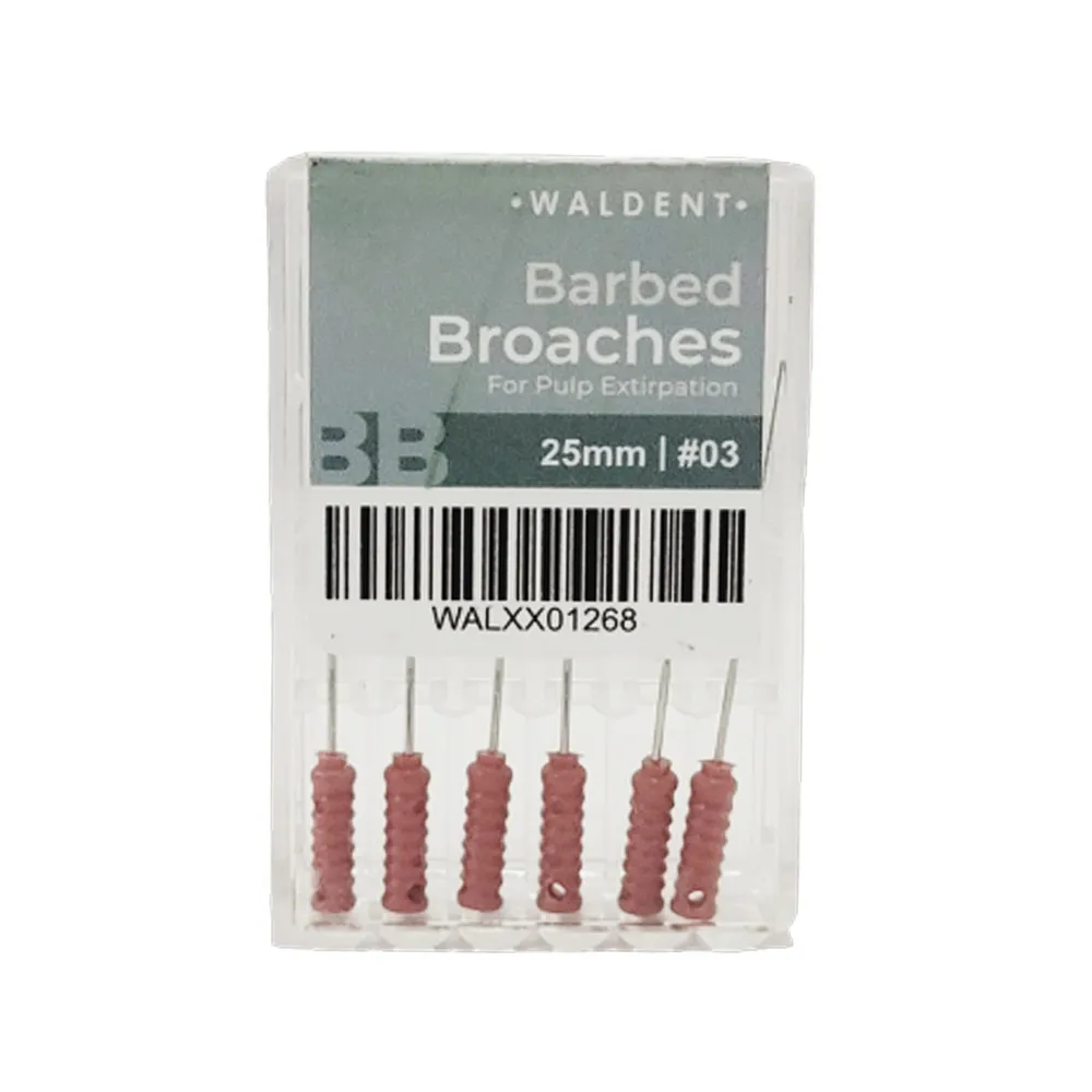 معرفی و خرید باربروچ طول 25 - Barbed Broaches:جهت تمیز کردن کانال پس از عصبکشی استفاده میشود.بدنه خاردار آن باعث چسبیدن موائد زائد به آن و کمک به خارج نمودن آنها میشود.باربروچ طول 25 برند توماسبا سایزهای 20، 25، 30، 35، 40 و آسورت در بستهبندی 6 عددی عرضه میگردد.****خرید تجهیزات دندانپزشکیبا برندهای معتبر از سایت دندانت *****خرید تجهیزات اندودانتیکسبا کیفیت فوق العاده و قیمت استثنایی از سایت دندانت *