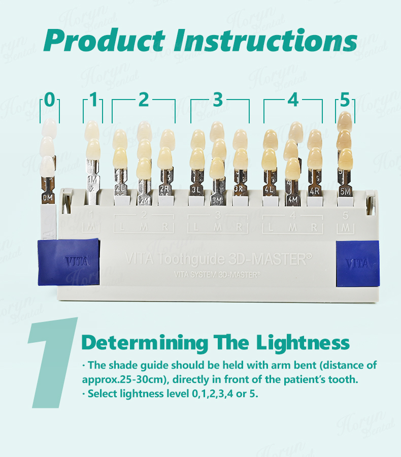 توضیحاتیکی از مهمترین نگرانیهای افراد متقاضی کامپوزیت و روشهای ترمیمی دندان، داشتن دندانهایی طبیعی و یک دست است.برای اینکه ترمیم کامپوزیت ظاهری کاملا طبیعی داشته باشد و با دندانهای خود بیمار آنچنان تفاوتی نکند، به شید گاید نیاز است. شید گاید یکی از بهترین ابزارهایی است که میتوان به کمک آن یک ترمیم کاملا طبیعی داشت.شید گاید چیست؟شید گاید، در واقع یک سری دندان شبیهسازی شده است که از آن در درمانهای مختلف دندانپزشکی از جمله کامپوزیت و ایمپلنت استفاده میشود. به کمک این ابزار میتوان رنگ دندان و کامپوزیت مورد نیاز برای بیمار را در فضای تاریک دهان به خوبی تشخیص داد. شید گایدها چندین نمونه رنگ مختلف دارند.چرا شید گاید ویتا 3D مستر؟برند ویتا یک برند آلمانی و بسیار باکیفیت است. به کمک شید گاید ویتا 3D مستر میتوانید به راحتی رنگ و سایه دندان طبیعی بیمار را با کامپوزیت مقایسه کرده و بهترین رنگ را انتخاب برای او انتخاب کنید.سیستم انتخاب رنگ در شید گاید ویتا 3D مسترانتخاب رنگ در شید گاید ویتا 3D مستر، بر اساس value بوده و بر همین اساس رنگهای این شید گاید به 5 گروه تقسیم شدهاند. گروه اول و پنجم در این شید گاید از لحاظ هیو (Hue) ثابت بوده و تنها یک گروه هیو دارند.در مقابل گروههای دوم، سوم و چهارم از لحاظ هیو شامل 3 دسته Middle (M)، Right (R) و Left (L) میشوند. همچنین هر کدام از این رنگها در هیوی خود بر اساس کروما به دو یا سه دسته جداگانه تقسیم میشوند.روش اصولی استفاده از شید گاید ویتا 3D مستر چگونه است؟برای انتخاب بهترین رنگ برای ترمیم دندان بیمار، باید از شید گاید به طور اصولی استفاده کنید. برای این کار ابتدا باید از فاصله 30 سانتیمتری با چشمان نیمه بسته، نمونه رنگ پیشنهادی خود را از جلوی دندانهای بیمار بگذرانید.به این ترتیب با مقایسه بالاترین نمونه رنگ در هر گروه و دندانهای طبیعی بیمار، value تعیین میشود. بعد از انتخاب value ، کروما و سپس هیو مناسب را باید تعیین کنید.