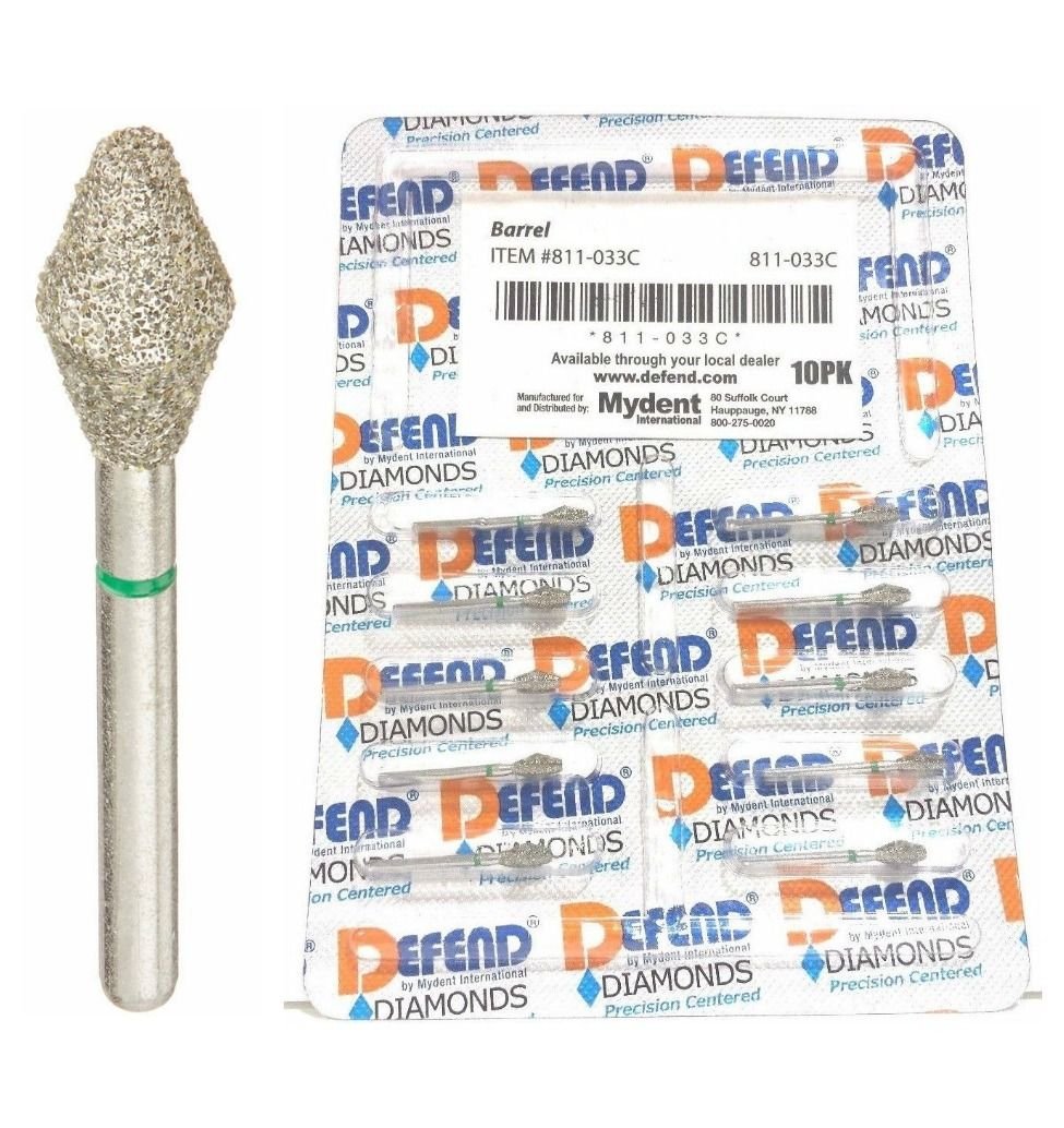 فرز الماسی مدل بشکهای توربین - Dental Diamond Burs Barrel 811:فرز الماسی کد 811 محصلولی ازکمپانی نام آشنای لاستردنتاست که فرزهای خود را بامتریال فرانسویروانه بازار کرده و از این رو این محصولات نسبت به سایر برندهای مشابه مزیت و برتری دارند.فرز کد 811 این برند با سه قطر متمایز033C، 037C و 31Cبا نوارسبز رنگکه معرف کارکرد آن (مخصوص تراش) است در بستههای 5 عددی در فروشگاه اینترنتی دندانت موجود است.