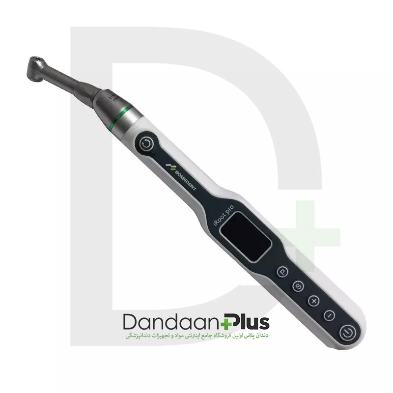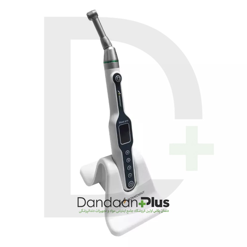 توضیحاتاندو موتور iRoot pro یک دستگاه پرتابل بسیار پیشرفته جهت آماده سازی کانال ریشه همراه با اپکس داخلی می باشد.آماده سازی کانال ریشه با فایلهای روتاری مختلفتعیین طول اپکس به صورت مستقلآماده سازی کانال ریشه همزمان با اندازه گیری، اعلام هشدار، و فرمانهای کنترلی چگونگی حرکت فایلآماده سازی کانال به روش Reciprocating (رفت وبرگشتی)پرتابل(قابل شارژ)، بدون سیم و هوشمنددارای اپکس لوکیتور داخلی با قابلیت کنترل اندو موتورسازگار با اغلب فایل های روتاری NI-TIصفحه نمایش OLEDدارای هشدار دهنده صوتیقابلیت بکارگیری در شش زاویه برای هر دو دستقابلیت اتصال و انتقال داده، بدون سیم به اپکس لوکیتور با تکنولوژی بلوتوثسهولت استفاده بوسیله پوش باتنقابلیت تنظیم ترک، گشتاور و سرعت جهت استفاده از فایلهای مختلف با دستور کاربری متفاوتدارای حالت شروع سریعقابل استفاده با هر دو دستقابلیت اتوکاو و استریل قطعات در دما و فشار بالا (135 °C)قابلیت ذخیره سازی10 حافظه قابل تنظیمحافظه شروع سریعحالتهای چرخش مختلف: در جهت عقربه های ساعت ، خلاف جهت عقربه های ساعت ، رفت و برگشتی (reciprocating)دارای کنترل اتوماتیک: شروع خودکار، توقف خودکار، معکوس خودکارقابل شارژ در پایه شارژ و میکرو USB و قابلیت جایگزینی باتریامکان استفاده از آنگلهای متفاوت 4:1 10:1 16:1 20:1پارامترها:1. سرعت چرخش قابل تنظیم از 150 تا ۱۰۰۰ دور در دقیقه2. گشتاور(تورک) قابل تنظیم از ۰٫۵ تا ۴ نیوتن بر سانتیمتر3. ضریب گشتاور ۱ به ۱کشور چیندارای گواهی CE واستاندارد ISO13485 و تاییدیه اداره تجهیزات پزشکی ایران