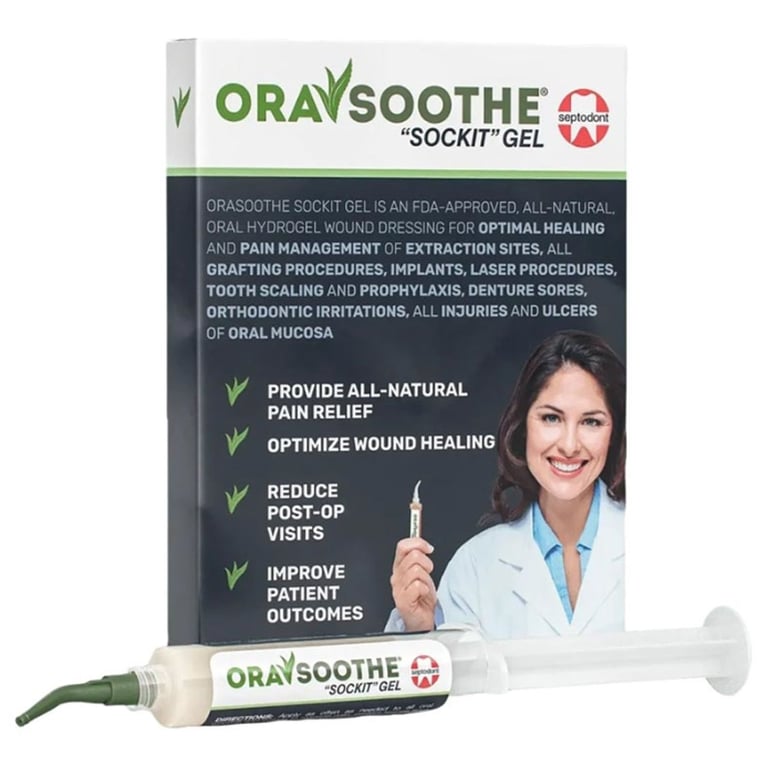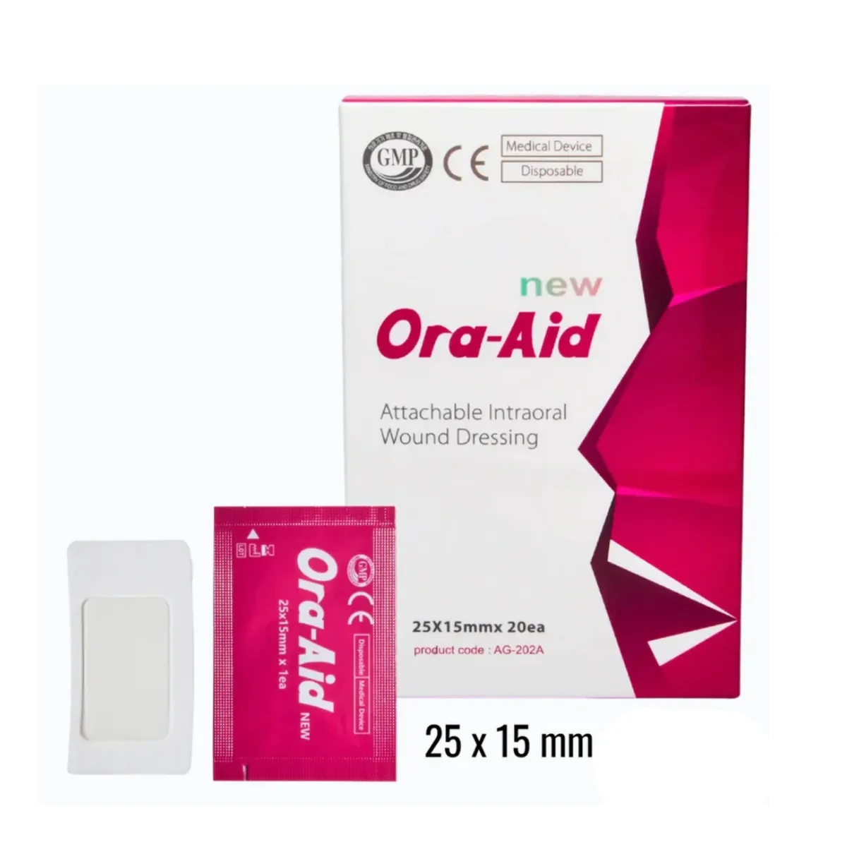 چسب داخل دهانی - Attachable Intraoral Wound Dressing:این محصول به منظور محافظت از زخمهای داخل دهانی در مقابل غذا، باکتری و دود سیگار و همچنیننواحی پس از جراحی (مانند بعد از کشیدن دندان عقل یا جراحیهای لثه) توسط کمپانی Ora-Aid تولید و عرضه شده است. از ویژگیهای حائز اهمیت آن میتوان به کاهش بوی بد دهان بوسیله داشتن طعم نعناع، محافظ زخمهای آفتی (زخمهای دهانی)، برش آسان به اشکال و اندازههای مختلف، چسبندگی مناسب با استفاده از پلیمر آبدوست (هیدروکسیاتیل سلولز)، محافظت از بخیه در برابر برخورد زبان، کاهش سوزش زخم، استفاده آسان و ایمن، کمک به هموستات و دارا بودن ویتامین E اشاره کرد.چسب داخل دهانی (Attachable Intraoral Wound Dressing) از برند Ora-Aid ساخت کرهجنوبی به صورت تک عددی در ابعاد 25*15 و 50*15 میلیمتر در فروشگاه اینترنتی دندانت عرضه میشود.
