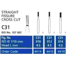 فرزهای کارباید فیشور توربینSTRAIGHT FISSURE LONG CROSS CUT C31LتیزکاوانTEESKAVAN