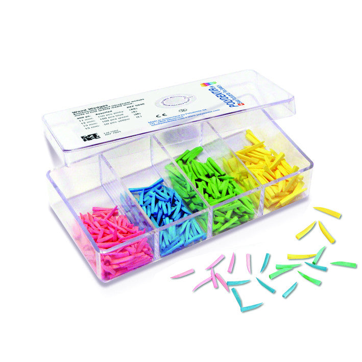 وج چوبی آناتومیک - Wooden Wedge:قطعه کوچکی از چوب فرم داده شده است کهجهت ثابت نگه داشتن ماتریکسبند در محل در امتداد لبه لثهای حفرههای کلاسII،حفظ حریم لثه و جدا کردن دندانهای مجاور کاربرد دارد و در ناحیه امبرژوال لثهای قرار داده میشود.از جمله مزایایی که میتوان برای وجهای دندانپزشکی بیان کرد این است که نیازی به برش و یا تنظیمات خاصی ندارد و در هر شرایطی ماتریکسبند را ثابت نگه میدارد.وج چوبی آناتومیک از برند Cotisen در رنگهای آبی، صورتی، زرد، سفید، سبز، نارنجیدر بستههای 100عددی در فروشگاه اینترنتی دندانت عرضه میشود.