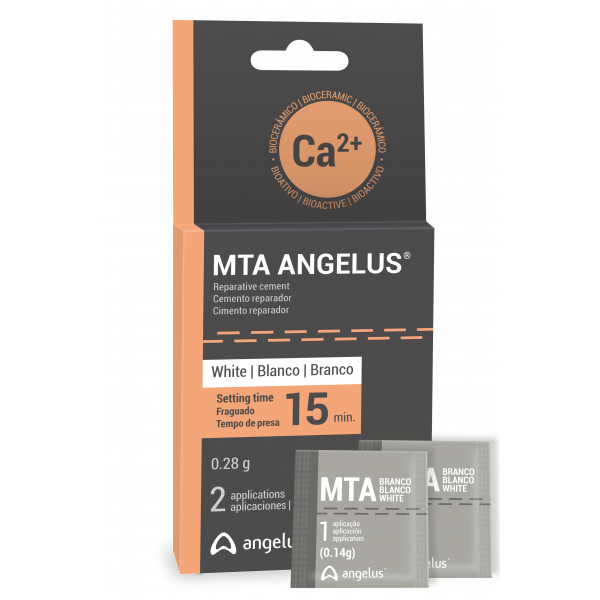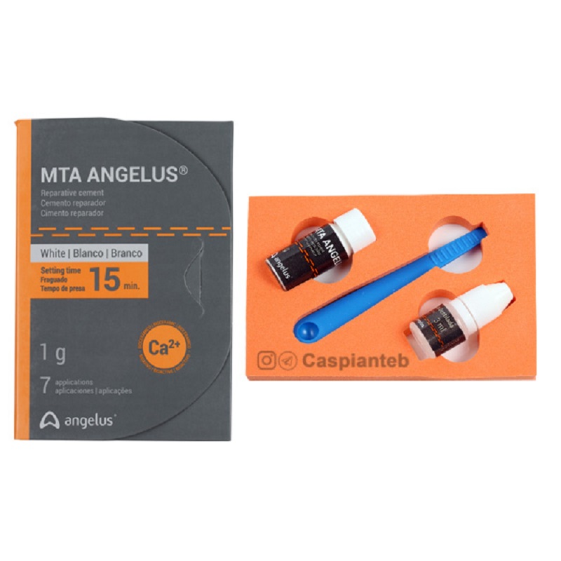 MTAAngelus–امتیای آنجلوس، یک سمان بسیار مناسب برای مسدودسازی اپیکال پیش از پرکردن کانال ریشه در دندانهایی است که اپکس باز دارند.کاربردهای MTA Angelus – امتیای آنجلوسامتیا انجلوس کاربردهای فراوانی دارند که عبارتند از:مناسب برای پرکردن معکوس انتهای ریشه دندان در جراحیهای پری اپیکالمناسب برای سیل داخل تاج دندانهای اندو شده قبل از انجام بلیچینگ داخلیمناسب برای پالپوتومی و پالپ کپینگ مستقیم در دندانهای دائمی و شیریمناسب برای پرفوکاسیونامتیای انجلوس چه ویژگیها و مزایایی دارد؟از جمله ویژگیها و مزایای این محصول، میتوان به موارد زیر اشاره کرد:قیمت مناسب و به صرفهتایم ستینگ 15 دقیقهایاستفاده آسانمقاوم در برابر رطوبت داخل دهاندارای خواص آنتی باکتریالمقاوم در برابر فشاردارای قابلیت انتشار یون کلسیمبیوسرامیک با پایه MTAدارای خواص قلیاییخواص رادیواپسیته بالاتر از دنتین و استخوان و وضوح کامل در فیلمهای رادیوگرافیبرای مشاهدهقیمت سیلر دندانپزشکیبه وبسایتفروش اینترنتی مواد دندانپزشکی دنتیوامراجعه کرده و محصول مدنظر خود را با تضمین اصالت کالا خریداری نمایید.