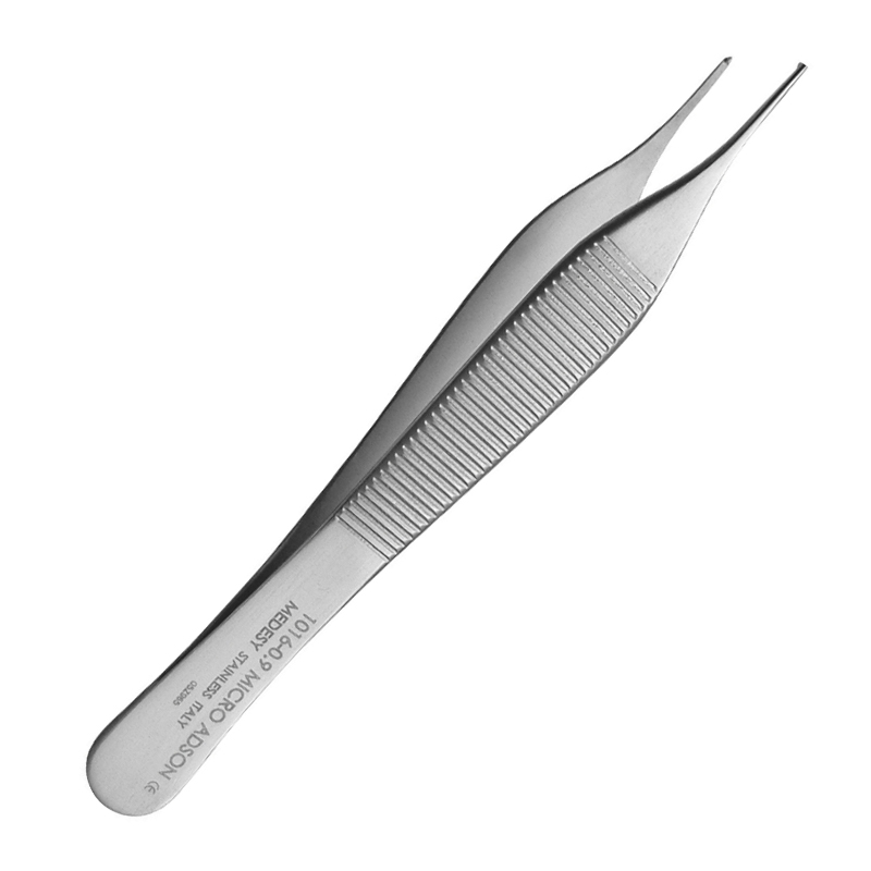 پنس ادسون میکرو - Micro Adson Tweezer OY:برای نگه داشتن بافت های داخلی و ظریف مورد استفاده قرار میگیرد. جنس آن از استیل ضد زنگ است که باعث مقاومت محصول در برابر زنگ زدگی، خوردگی و تغییر رنگ میشود؛ به همین جهت میتوان آن را با مواد ضدعفونیکننده استریل کرد و یا در دستگاه اتوکلاو قرار داد. تیپ این محصول بسیار ظریف و با ضخامت 0.9 میلیمتر بوده که همین ظرافت به افزایش دقت و سهولت کار دندانپزشکان کمک بسیاری میکند.از دیگر ویژگیهای منحصربهفرد این محصول شیارهای روی بدنه آن است که باعث قرارگیری محکم و بدون سر خوردن در دست میشود.پنس ادسون میکرو مدل OY برند مدچی با طول 120mm و جنس استیل ضد زنگ در فروشگاه اینترنتی دندانت عرضه میگردد.****خریدپنس جراحیبا بهترین قیمت از فروشگاه اینترنتی دندانت********بهترینابزار و لوازم جراحی و پریودر وبسایت دندانت****