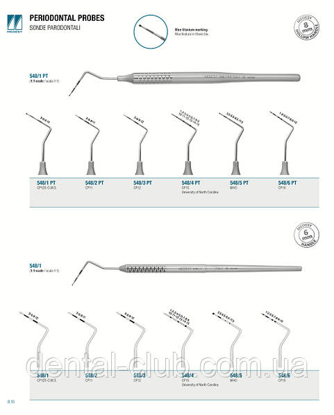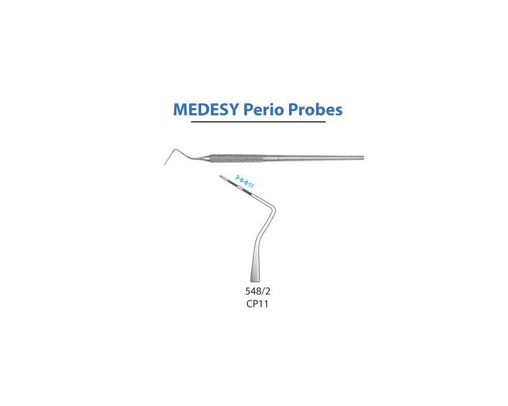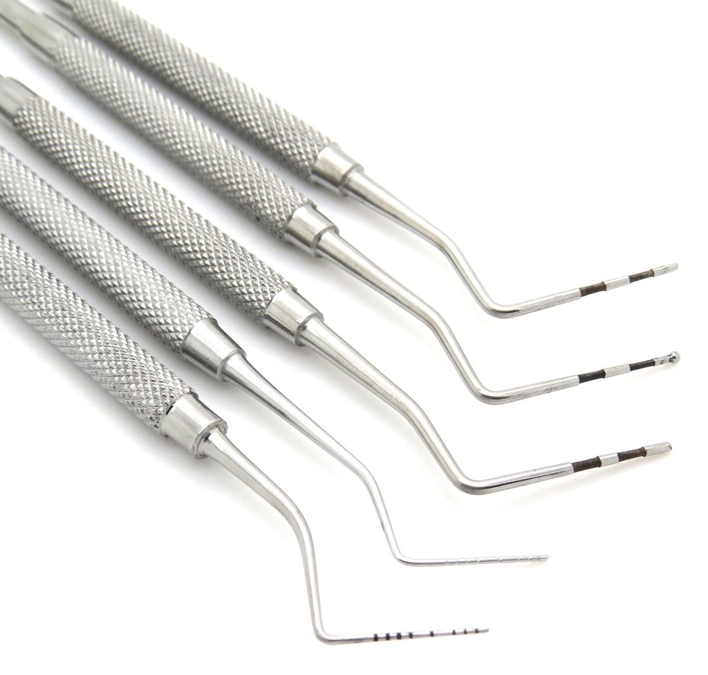 پروب - PROBE CP11 PT:این پروب برای اندازه گیری عمق سالکوس وعمق پاکت مورد استفاده قرار میگیرد. در واقع نوک پروب به صورت موازی با محور طولی دندان وارد پاکت شده و به آرامی حرکت میکند و تمامی نواحی را اندازه گیری میکند.از مزایای این پروب میتوان بهمقیاسهای میلیمتری و کمرنگ آن اشاره کرد که از جنس CNC بوده و با گذشت زمان بدون تغییر باقی میماند و از بین نخواهد رفت.همچنین جنس این محصول از استیل ضد زنگ و پوشش کربنی (DLC) است که باعث مقاومت بدنه آن هنگام ضدعفونی میشود.پروب CP11 PT از برند مدچی در فروشگاه اینترنتی دندانت عرضه میگردد.****بهترین برندهایپروبرا فروشگاه اینترنتی دندانت تهیه کنید********ابزار جراحی و پریودر وبسایت دندانت****
