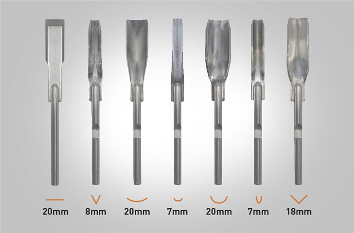 چیزل - Chisel:برای تراش دادن مینای بدن محافظ عاج وهمچنین قرار دادن لبه های مینا و عاج به کار می رود.چیزل برند دنتال دیوایسبا جنس استیل ضد زنگ و سایز کوچک عرضه می گردد.