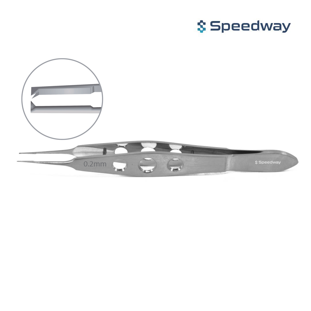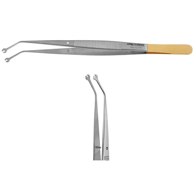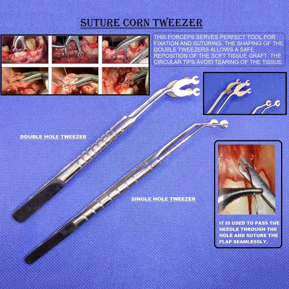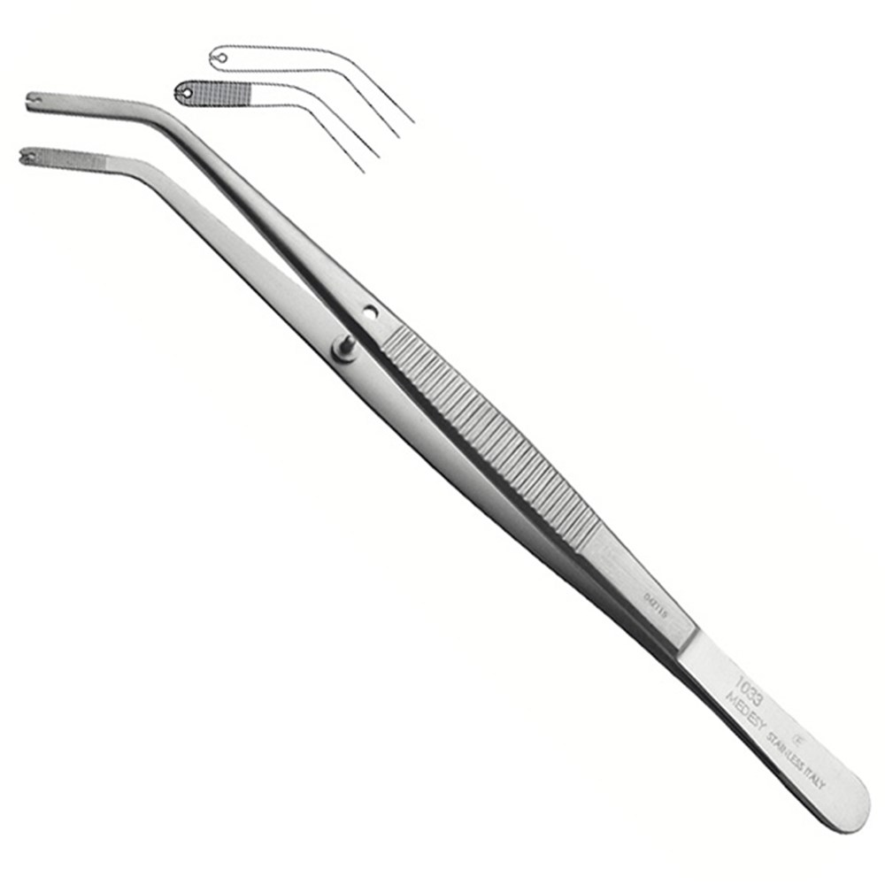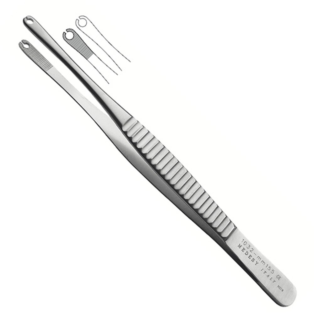 پنس بخیه - Suture Tweezers:پنس بخیه برند مدسی دارای تیپ دندانه دار است که برای نگه داشتن بافت نرمی که قرار است بخیه شود سوراخ شده است. ساخته شده از فولاد ضد زنگ با کیفیت بالا، دارای یک دسته خرطومی است که در هنگام بخیه زدن، کاملا در دست دندانپزشک قرار میگیرد.از ویژگیهای ممتاز اینسترومنتهای برند مدسی مقاومت بسیار بالای آنهای در برابر ایجاد خط و خش است.پنس بخیه مدل Suture از برند ایتالیایی مدسی در سه مدل سر صاف، سر مربع و سر منحنی با طول 155 میلیمتر و جنس استیل ضد زنگ در فروشگاه اینترنتی دندانت عرضه میشود.