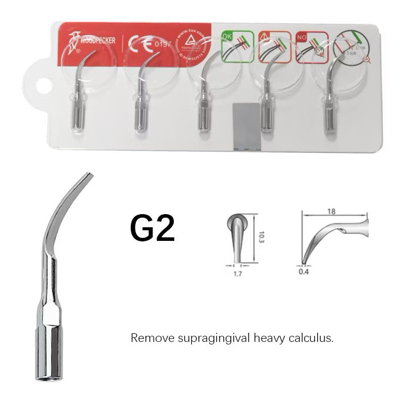 توضیحاتنوک سرقلم جرمگیر وودپیکر Woodpecker جزو مصرفی های یک دستگاه جرمگیری دندانپزشکی می باشد . دستگاه های جرمگیری با ایجاد ارتعاش بر روی این سر قلم ها ، باعث برداشت جرم از روی دندان ها می شوند. از جمله نوک های مناسب وودپیکر و دیگر جرمگیر ها ( Woodpecker , EMS , mectron , W&H ) که برای جرمگیری دندان بیمار استفاده می شوند شامل در مدل های G1 , G4 , G2 , و … تولید می شوند . دقت داشته باشید که بعد از کوتاه شدن سرقلم جرمگیری به میزان 2 میلیمتر ، باید تعویض گردند. در غیر اینصورت به دندان بیمار آسیب جدی وارد خواهد شد .