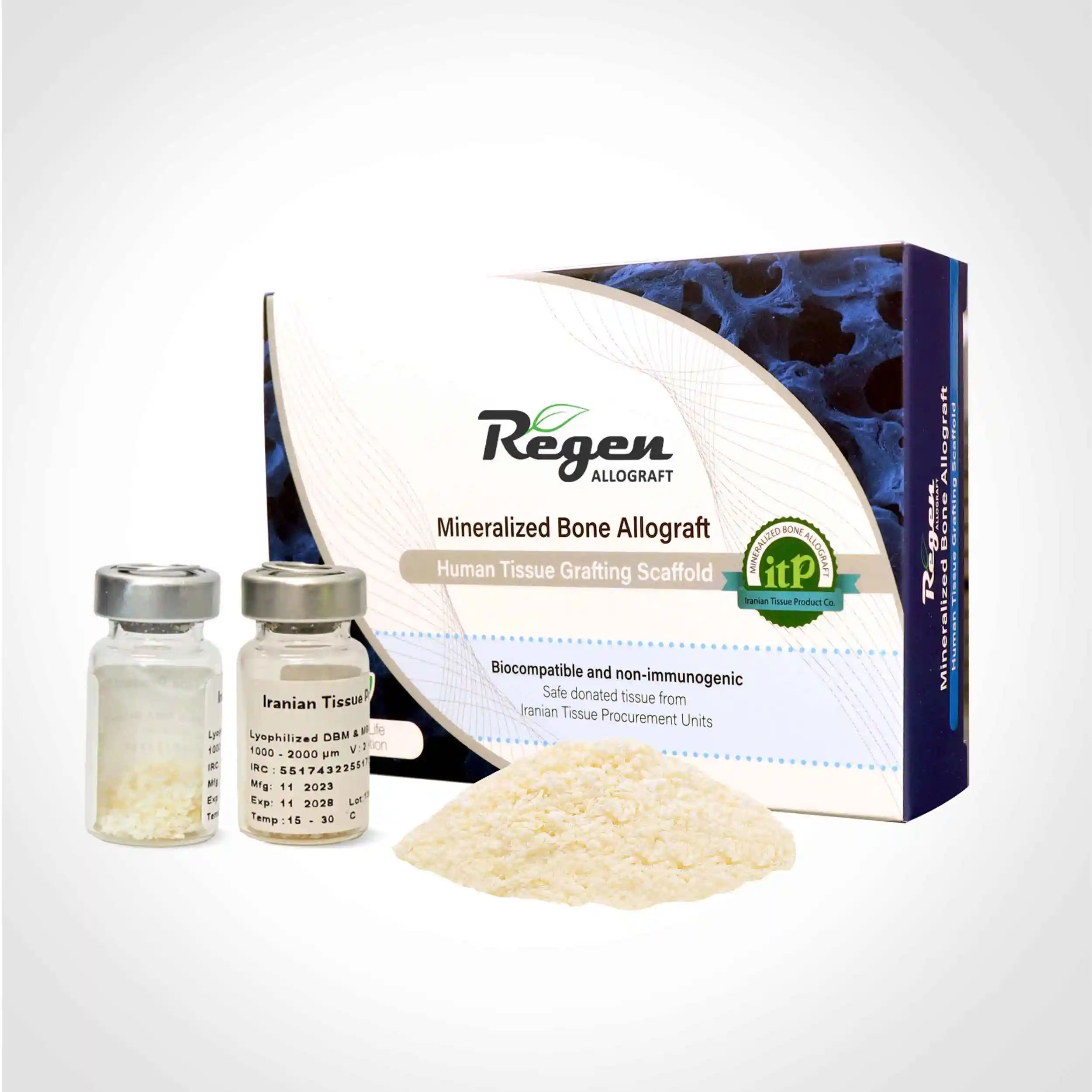 توضیحاتمحصول زنوگرفت استخوانی Bone+B یک نوع ماتریکس استخوانی غیرآلی است که به واسطه حذف ترکیبات آلی از استخوان اسفنجی گاو تهیه شده است. برای این منظور، منطبق با روش های دقیق علمی، استخوان های گاوی تحت تیمارهای شیمیایی و حرارتی قرار گرفته به طوریکه تمام محتوی آلی آن از قبیل پروتئین ها، DNA، سلول های خونی و چربی ح ذف شده اما ساختار متخلخل و کریستالی هیدروکسی آپاتایت حفظ شده است. آنالیز میکروسکوپ الکترونی روبشی (SEM) پودر استخوانی Bone+Bتایید کننده ساختار متخلخل این محصول میباشد.کاربرد پودر استخوان حیوانی زنوگرفت Bone Plus:ویژگی پودر استخوان حیوانی زنوگرفت Bone Plus:انواع مدل های عرضه شده پودر استخوان حیوانی زنوگرفت Bone Plusزنوگرافت Bone+ B ماتریکس استخوانی غیر آلی است که برای مصارف Periodontal و جراحی های Maxillofacial و Oral تولید شده است. ساختار متخلخل این استخوان غیر آلی از رگزایی و تشکیل استخوان جدید حمایت می کند. این محصول به دو صورت قوطی (جار ) و سرنگی عرضه می شود.تست زیست سازگاری انجام شدهرزیابی ژنوتوکسیسیتیهدف: بررسی اثر ژنوتوکسیسیتی Bone +B مواد و روش ها: برای بررسی اثرژنوتوکسیسیتیBone+B به روش comet assay، ابتدا محلول نرمال سالین به پودر استخوانی اضافه شده و به مدت یک هفته در دمای ۳۷ درجه نگهداری شد. از محلول عصاره گیری و فیلتر شده به دست آمده برای تیمار سلول های L929 استفاده شد. برای این منظور، سلول های L929 در پلیت های ۲۴ چاهکی کشت شده و با عصاره Bone+B تیمار شدند. از نرمال سالین و هیدروژن پراکساید به ترتیب به عنوان کنترل منفی و مثبت استفاده شد. پس از انکوباسیون پلیت ها به مدت ۳ ساعت در دمای ۳۷ درجه سانتیگراد، ۵۰ ماکرولیتر از هر نمونه با ۵۰ ماکرولیتر از آگارز محلول، مخلوط شده و از سوسپانسیون به دست آمده برروی اسلاید مخصوص تست Comet assay، گستره تهیه شد. اسلایدها پس از دو نوبت شستشو توسط 1XTBE، به مدت ۱۰ دقیقه الکتروفورز شده و در نهایت پس از فیکساسیون، خشک شدن و رنگ آمیزی اسلایدها با اتیدیوم بروماید، توسط میکروسکوپ فلورسنت مشاهده شدند.یافته ها:نتایج تستcomet assay به صورت میانگین طول دم و سر DNA متعاقب تیمار سلولها توسط عصاره Bone+B اندازه گیری شده و توسط تست های آماری one – way ANOVA، unpaired Student’s tو Dunnet’s post hoc مورد ارزیابی قرار گرفتند.عصاره