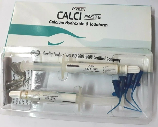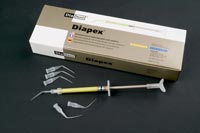 کلسیم هیدروکساید سرنگی - DiaPex Plus:یک ماده صدعفونی کننده برای کانال های ریشه عفونی است که عمدتا حاوی کلسیم هیدروکساید و باریم سولفات است.برای درمان ریشه جهت جلوگیری از گندزدایی و پوشش دهنده موقتی کانال ریشه قابل استفاده می باشد.جهت درمان بخش های لکروز و شکستگی های التهابی دندان موثر است.این محصول دارای ویژگی های ضد باکتریایی است.کلسیم هیدروکساید سرنگی برند دیادنتدر بسته های حاوی یک عدد سرنگ 2 گرمی، 4 عدد تیپ یکبارمصرف و یک عدد سیلیکون کپ عرضه می گردد.