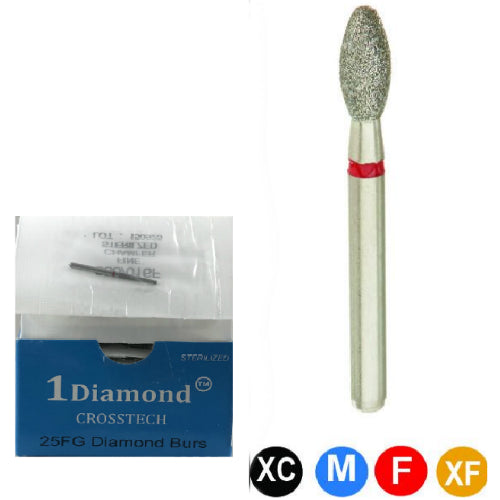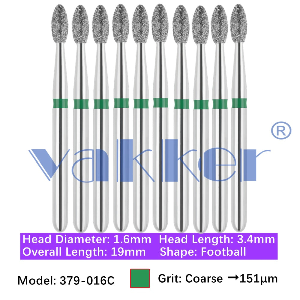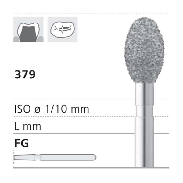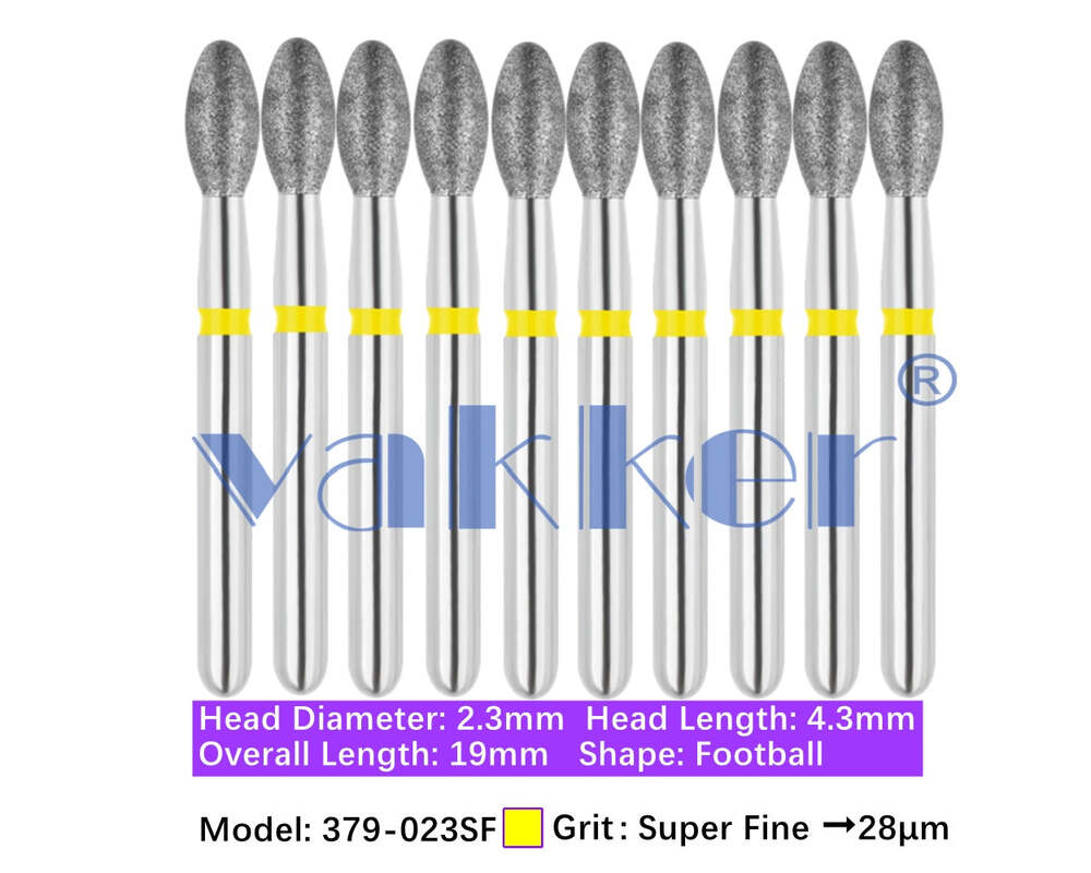 فرز الماسی مدل شعله شمعی توربین فرم 277 - Dental Diamond Burs Football 379:این فرز در خالی کردن پرکردگیهای قدیمی مورد استفاده قرار میگیرد.در آماده سازی تاج دندان و Inlay/Onlay کاربرد دارد.فرز الماسی شماره379با فرم277از برند DFS ساخت آلماندر رنگ سبز، زرد و مشکی در سایزهای014، 018، 023 و بسته بندی 5 عددی عرضه می گردد.