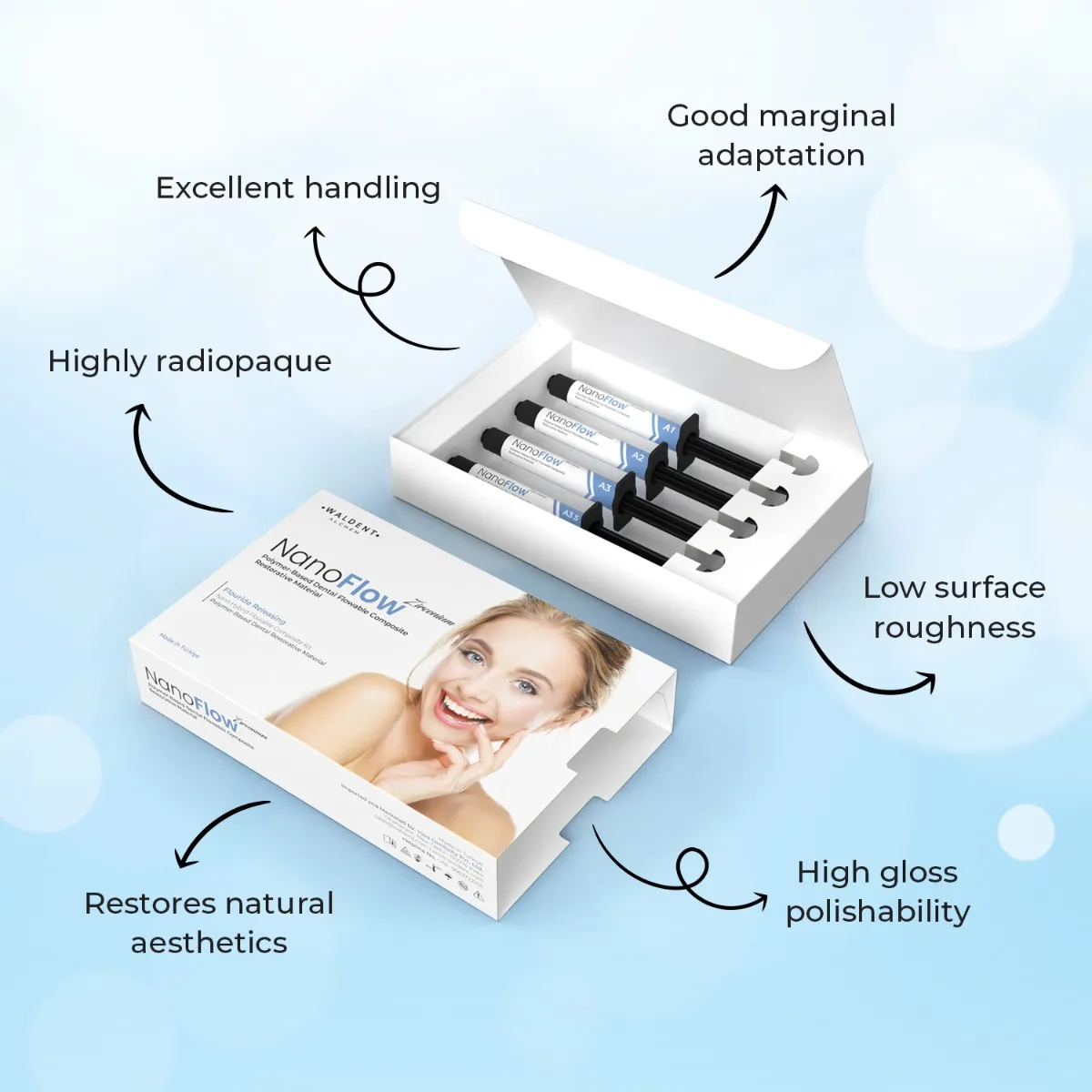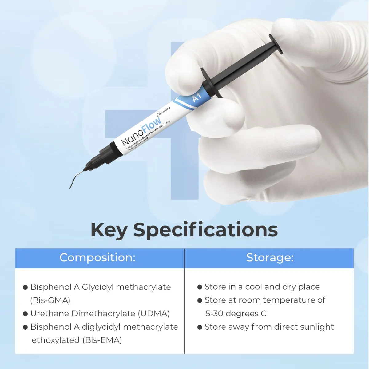 کامپوزیت فلو - Charm Fil Flow:نوعی کامپوزیت رزینی سیال می باشد که برای بلوک اوت اندر کات و ترمیم حفرات سرویکالی یا پروگزیمالی دندان ها قابل استفاده است.خاصیت رادیواپک دارد و دارای استحکام و خاصیت ارتجاعی بالایی می باشد به همین دلیل استفاده از آن آسان است و در دندان های قدامی و خلفی قابل استفاده است.رنگ کامپوزیت فلو با دندان های طبیعی به راحتی قابل تطبیق است و می توان از آن برای پوشاندن پیت و فیشور های کوچک دندان استفاده کرد و همچنین به عنوان آستر و کف بندی زیر مواد ترمیمی قابل استفاده است.کامپوزیت فلو برند Dentkistدر رنگ های A0 ,A1، A2، A3، B1، OW، Blue,OA2, OA3, UO و در بستههای حاوی 2 عدد سرنگ 2 گرمی به همراه سری های یکبار مصرف عرضه می گردد.**** فروشگاه دندانت تنها فروشگاه اینترنتیتجهیزات دندانپزشکی******** خریدکامپوزیتاز بهترین برندها در سایت دندانت ****