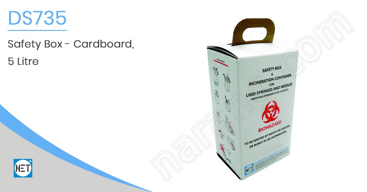 توضیحاتسیفتی باکس ظرفی از جنس مواد پلیمر و کاملا یکبار مصرف برای نگهداری و حفظ پسماندهای تیز، برنده، سرنگهای پزشکی یا سایر وسایل آلوده است که بعد از پر شدن ظرفیت آن تا خط مشخص شده باید درپوش ظرف را کاملا پلمپ کرده و مطابق با استانداردهای موجود از بین برده شود.سیفتی باکس ها باید نسبت به نفوذ پذیری، ضربه، وارد شدن نیرو، نشتی و ضربه ناشی از سقوط مقاوم بوده و محتویات آن تحت هیچ شرایطی بعد از پلمپ شدن خارج نشود.به دلیل خطرناک بودن پسماندهای بیمارستانی قویا توصیه میشود که جمع آوری، نگهداری و دفع سر سوزن و سایر اجسام تیز و برنده مانند آنژیوکت، لانست، اسکالپ، سرنگ نمونه گیری و غیره به وسیله سیفتی باکس بلافاصله بعد از استفاده از وسیله، صورت بگیرد.