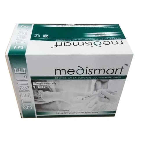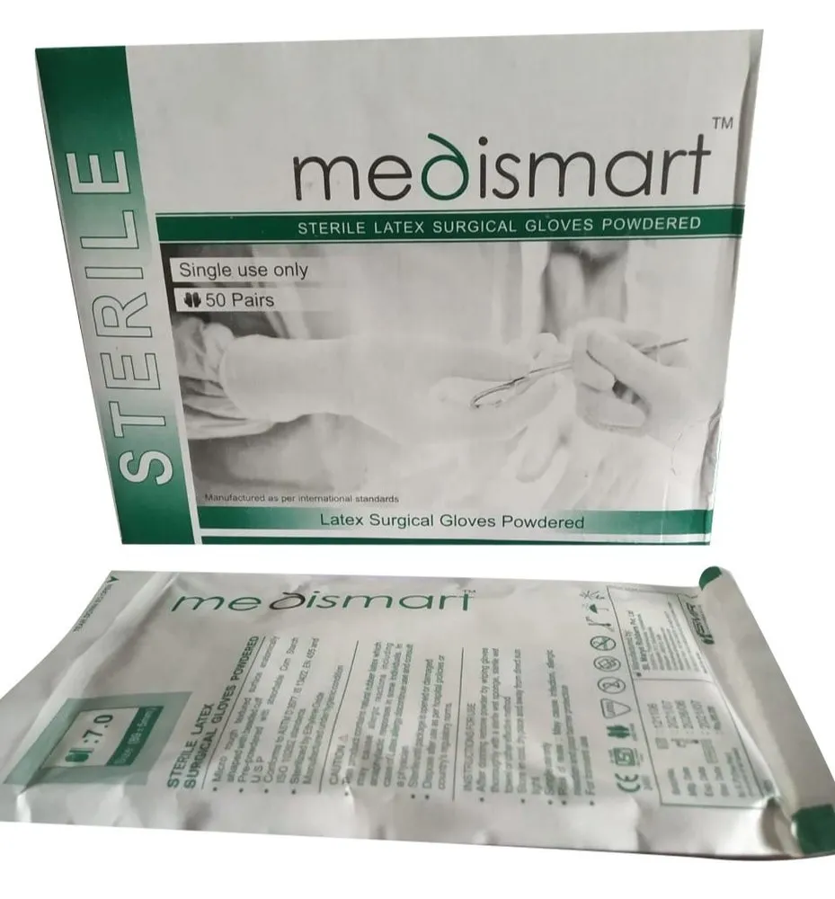 دستکش جراحی کم پودر برند مدی اسمارت بسته بندی 50عددی