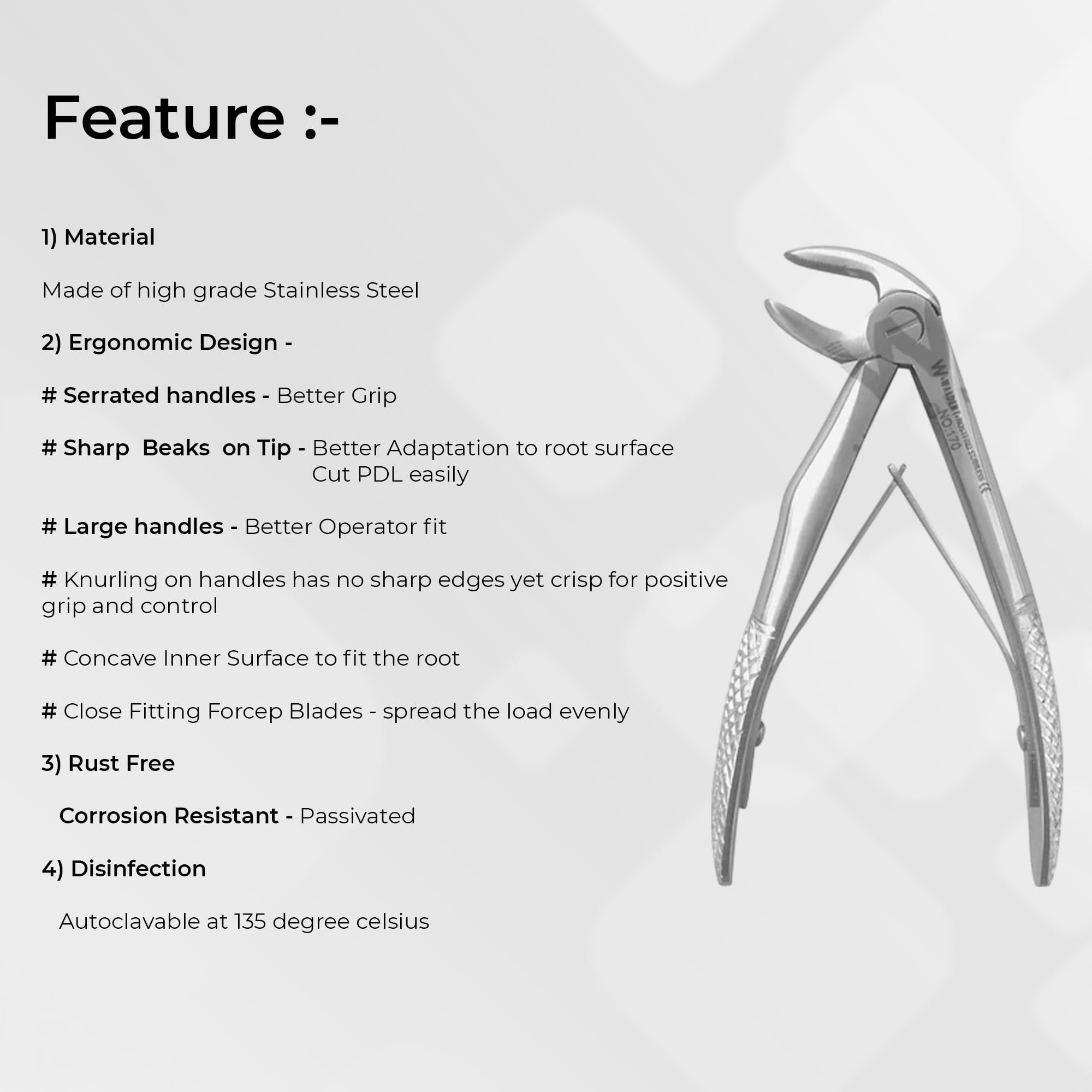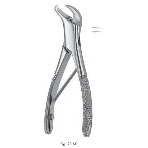 فورسپس مولر فک پایین اطفال - Pediatric Lower Molars Forceps:این فورسپس جهت استفاده دندان های مولر اطفال مورد استفاده قرار می گیرد.در ساخت قسمت فوقانی ظرافت خاصی دارد و لبه های بالا و پایین فورسپس دندانه دار است.مشابه نمونه های اروپایی طراحی و تولید شده است.طول فورسپس 13 سانتی متر و طول کاربردی آن 2 سانتی متر است.فورسپس مولر فک پایین اطفال برند دنتال دیوایسبا جنس استیل عرضه می گردد.**** خریدفورسپسبا بهترین قیمت کلیک کنید ******** خرید بهترینابزار دندانپزشکیبا کیفیتی تضمینی تنها در دندانت ****