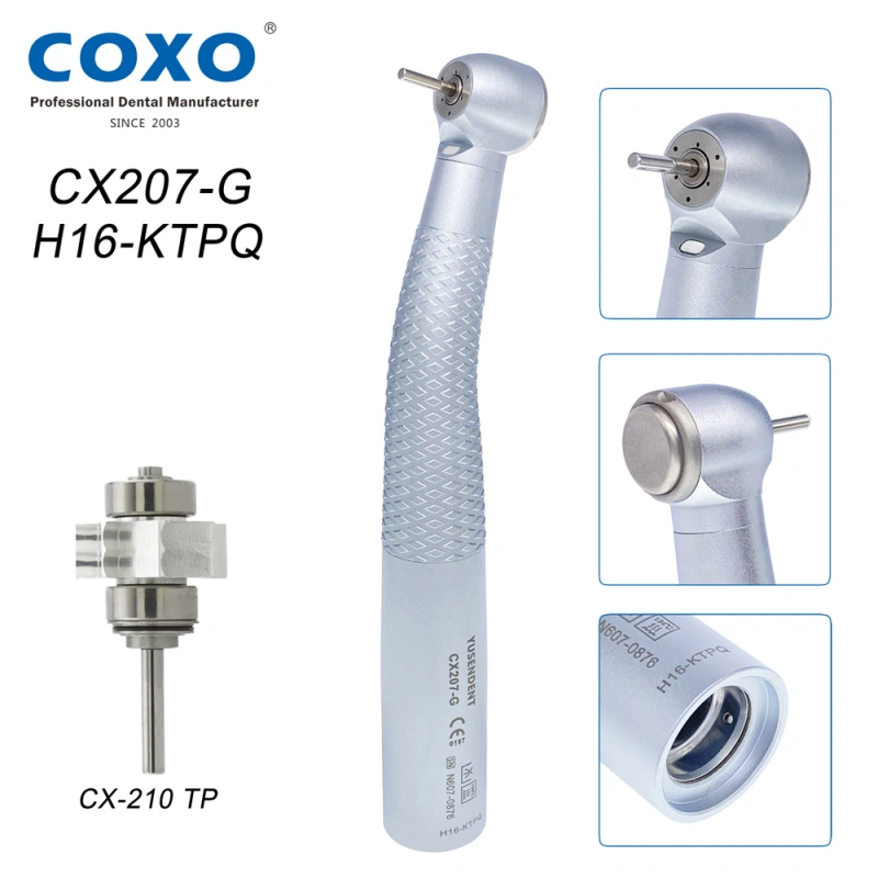 توضیحاتتوربین کوکسو COXO مدل ۲۰۷هد بزرگ پوش باتنبلبرینگ آن از جنس سرامیک ساخته شده است.نازل آن تک کاناله است.حداکثر سرعت چرخش آن ۳۵۰.۰۰۰ دور در دقیقه است و قدرت تراش بالاییدارد.جنس بدنه آن از آلیاژ آلومینیوم ساخته شده است.سرعت 350000 دور در دقیقهدو سوراخهفایبراپتیک نیستTechnical: High speed handpiece: 1 way sprayChuck type: push button Noise: ≤65dBAir pressure at the back end of HP: 0.22-0.24MPA (4hole)Effective range of overload pneumatic protection: 0.3MPa~0.5MPaRptation speed: ≥350,000rpm