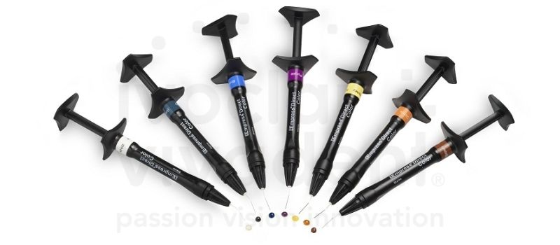 توضیحاتکاربرد آسان و هندلینگ عالیوجود فیلرهای سرامیکی و رنگ طبیعیایجاد رنگ پایه و ساختاری با کامپوزیت دنتینایجاد جلوه طبیعی دندان با کامپوزیت اناملپالیش پذیری عالی با درخشندگی ماندگاراستحکام فشاری بالاترنسلوسنسی متنوعیک عدد سرنگ 3 گرمیمورد استفاده برای ترمیم دندان های قدامیسازگار با کامپوزیت دنتین با ایجاد رنگ پایه با قابلیت نانو هیبریدبا برخورداری از فیلر های سرامیکی باعث ایجاد جلوه طبیعی دندان با کامپوزیت انامل میشود.درخشندگی بی نظیر ماندگار با پالیش پذیری عالی و استحکام فشاری بالاکامپوزیت IPS Empress تنها کامپوزیتی است که با بهره مندی از خواص فیزیکی مطلوب فیزیکی، زیبایی مشابه با ترمیم سرامیکی ایجاد میکند.این کامپوزیت با قابلیت نانو هیبریدی، ترکیبات پایه و فیلر های آن شبیه به سرامیک های IPS Empress میباشد.کامپوزیت های دنتین از اپسیتی بالا برخوردار بوده و در مقایسه با کامپوزیت های انامل رنگ پایه و ساختاری را ایجاد میکند. ضمن این که کامپوزیت های انامل با ایجاد ترنسلوسنسی مناسب و شبیه به مینای دندان، جلوه طبیعی به دندان ها میبخشد.همچنین برای افزایش میزان ترنسلوسنسی میتوان از گروه های Trans20، Trans30 استفاده نمود.پالیش پذیری عالی، کاربرد آسان و استحکام بالا از دیگر مزایای این کامپوزیت میباشند.