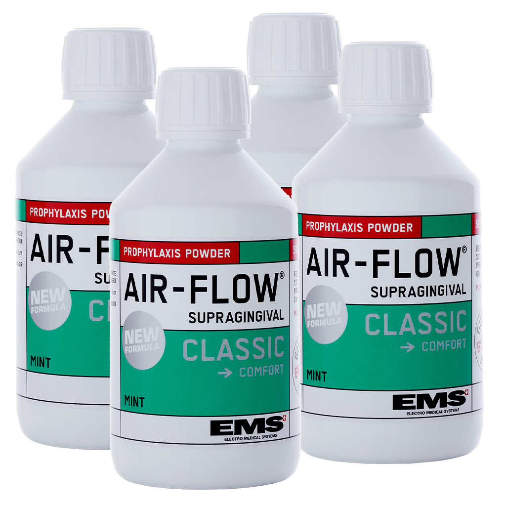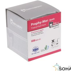 توضیحاتپودر ایرفلو مدل پروفی مور – Air Flow Prophy Mor Powder :پودر ایرفلو مروابن Airflow Prophy Mor برای استفاده در دستگاه ایرفلو کاربرد دارد. با استفاده از این پودر ایرفلو، لکه ها، پلاک، زردی و آلودگی دندان از بین میرود. همچنین از این پودر در درمانهای بلیچینگ دندان، قبل از فلوراید درمانی و قبل از چسباندن ونیر، روکش، کراون، کامپوزیت و نیز قبل از باندینگ براکت ارتودنسی استفاده میگردد.از دیگر کاربردهای این پودر ایرفلو در درمان پریودنتال، پیشگیری از پوسیدگی دندان التهاب لثه، از بین بردن جرم در نواحی gingival و رنگدانه های نوشیدنی و مواد خوراکی می باشد. پودر ایرفلو مروابن Prophy Mor پودری خالص و سفید رنگ به میزان 130 گرم و با رایحه ی خوب بوده که حاوی اکسید آلومینیوم است. پودر Morva prophy حداقل میزان سایش را دارد.نحوه مصرف:پودر ایرفلو مروابن Prophy Mor را در مخزن ایرفلوی دندانپزشکی ریخته و آن را روشن نمایید. به وسیله سیستم ترکیبی جریان هوای پر قدرت و آب با فشار بالا و نیز ذرات ریز میکرونی در این پودر، دندانها تمیز گشته و از هر نوع آلودگی و جرم پاک میشود. استفاده از این شیوه بدون بیهوشی و درد بوده و آسیبی به سطح و مینای دندان نمیرساند.