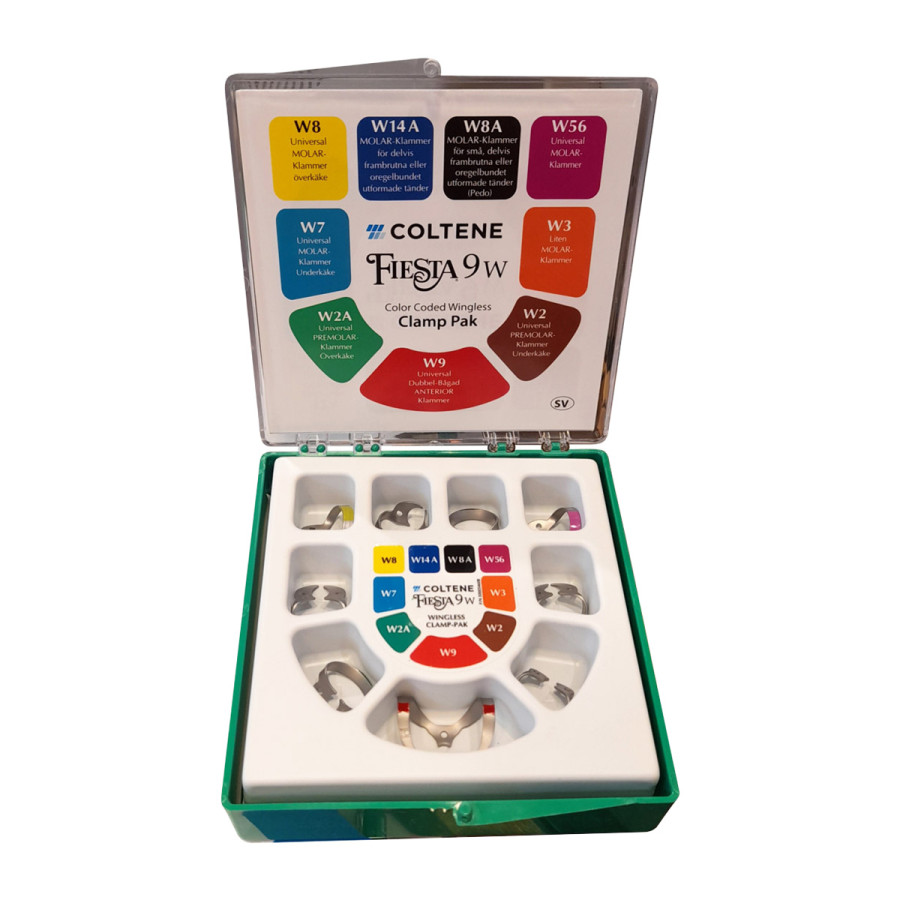 خرید ست کلمپ فیستا کلتنخرید ست کلمپ فیستا کلتنکمک گرفتن از یکی از باکیفیتترین محصولات است در جهت بهبود کیفیت و دقت درمان، و راحتی و ایمنی بیماران! در این ست، 9 کلمپ بالدار و بدون بال گنجانده شدهاست که از استیل ضدزنگ ساخته شدهاند، در نتیجه میتوان روی طول عمر بالای آنها حساب ویژهای باز کرد؛ و همچنین روی مقاومت بسیار خوبی که در برابر انواع آسیبها، ازجمله خوردگی، از خود نشان میدهند. گذشته از اینها، Coltene Fiesta Color Coded Clamp Set را به داشتن پوششی مات میشناسند که نور را بازتاب نمیدهد و دید دندانپزشک را مختل نمیکند. بهعلاوه تمام کلمپهای این ست دارای یک کد رنگی خاص هستند که هم روی بدنه و هم روی هولدرشان درج شدهاست: رنگهایی که به شما اجازه میدهند تا گیرهٔ مناسب برای هر موقعیت درمانی را خیلی سریع و راحت انتخاب کنید و پس از پایان کار و ضدعفونی کردن آن نیز، با نظمی درست در جای مخصوصش قرار دهید.»»خرید کلمپ دندانپزشکیقیمت ست کلمپ فیستا کلتنقیمت ست کلمپ فیستا کلتنبا نوساناتی که بازار ارز تجربه میکند دستخوش تغییر خواهد شد، اما همیشه میتوانید این محصول را ازفروشگاه مواد دندانپزشکی دنتیوابا قیمتی مناسبتر نسبتبه دیگر فروشگاههای اینترنتی خریداری کنید! ما که به عرضهٔ انواع مواد وتجهیزات دندانپزشکیمشغولیم که توسط برندهای برتر سراسر جهان تولید شدهاند، این ست ساخت آمریکا را با تضمین اصالت کالا بهفروش میرسانیم و بههمراهش یک گواهی مرجوعی 7 روزه نیز ارائه میدهیم تا اگر استثناً دچار اشکال بود، از بابت برگرداندن آن هیچگونه نگرانیای نداشته باشید! بهعلاوه دندانپزشکان عزیزی که به Coltene Fiesta Color Coded Clamp Set در مطب خود نیاز فوری دارند میتوانند به دنتیوا برای تحویل سریع آن اعتماد کنند: ما گزینههای مختلفی جهت انتخاب شیوهٔ ارسال کالا پیشِروی مشتریان خود قرار دادهایم که به آنها امکان میدهند تا محصول مدنظرشان در همان روز ثبت سفارش دریافت کنند، فرقی نمیکند که ساکن تهران باشند یا شهرستان!کاربردهای ست کلمپ فیستا کلتنهمانطور که گیرههای Fiesta 9 کدهای رنگی متفاوتی دارند، کاربردهای متفاوتی نیز دارند که عبارتاند از:کلمپ زردرنگ (12A): مناسب دندانهای مولار سمت راست فک پایینکلمپ بنفشرنگ (13A): مناسب دندانهای مولار سمت چپ فک پایینکلمپ آبیرنگ (14A): منا