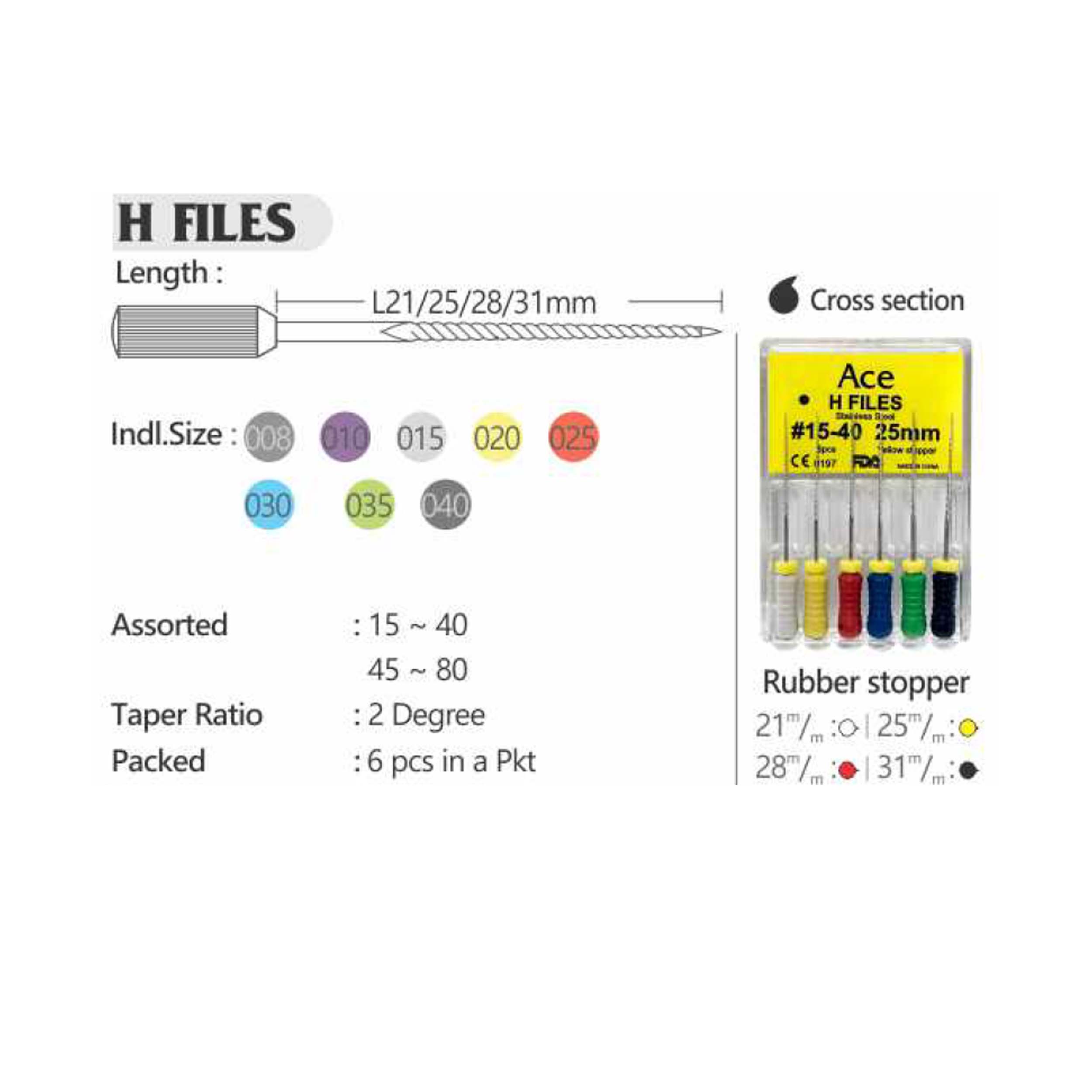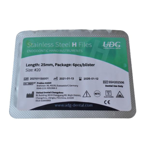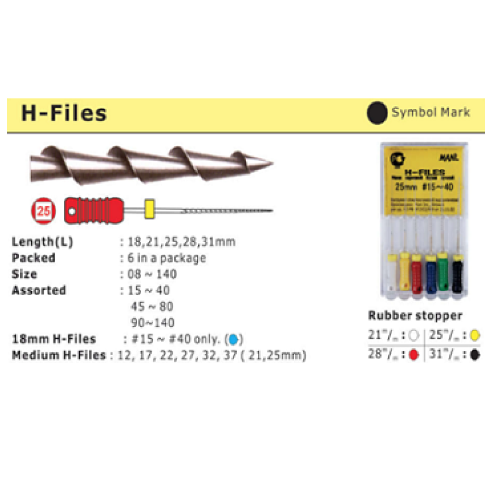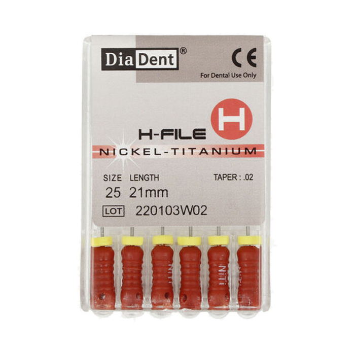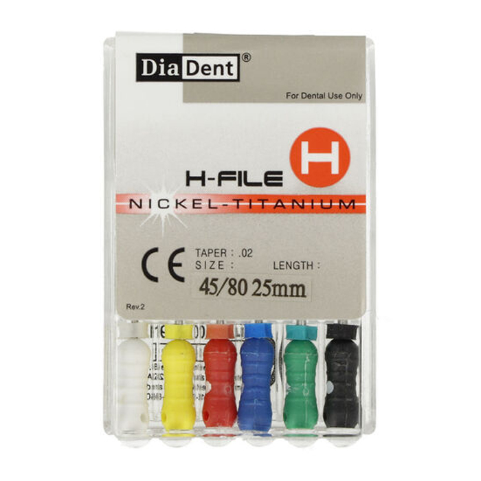 معرفی و خرید H فایل طول 25 - H File:این فایل بدنه خاردار و سر تیز و برنده دارد.برای تمیزکردن و شکلدهی کانال ریشه و برش مؤثر در فرآیندهای دستی کاربرد دارد.محصولی ارگونومیک میباشد و از استیل ضدزنگ ساخته شده است.مفتول تراش خورده با سطح مقطع نامتقارن در نتیجه برندگی بیشتری دارد اما شکننده است و باید با احتیاط بیشتری استفاده گردد.H فایل طول 25 برند IMDبا جنس استیل ضد زنگ در بستهبندی 6 عددی و سایزبندی 8-10-15-20-25-30-35-40-آسورت 15/40 عرضه میگردد.***** برای خریدفایل دستی دندانپزشکیبا بهترین قیمت کلیک کنید ******** خرید بهترینابزار دندانپزشکیبا کیفیتی تضمینی تنها در دندانت ****