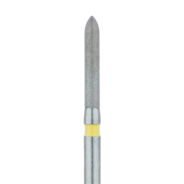 فرز الماسی مدل استوانه ای با نوک مورب توربین - Torpedo Dental Diamond Bur 868:فرز الماسی کد 867 یک بدنه استوانهای دارد که به تدریج به سمت انتها باریکتر میشود. این فرز به دندانپزشک اجازه میدهد تا به نواحی دور از دسترس به راحتی دسترسی پیدا کرده و تراش و برش را به راحتی انجام دهد. نوک گرد فرز میتواند به ایجاد حفره و شیارهای دقیق برای صاف کردن دیوارهها کمک کند. همچنین بدنه استوانهای آن برای پرداخت و صیقل دادن ترمیمها مورد استفاده قرار میگیرد.همچنین میتوان از این فرز برای انجام جراحیهای کوچک دهان مانند تراش و برش بافت استخوان به صورت محدود و یا برداشت بافت نرم اضافی بهره برد.لازم به ذکر است که درجه زبری فرزها ناشی از اندازه ذرات الماسهای تعبیه شده روی سطح آنهاست. هر چه این ذرات درشتتر باشند فرز زبرتر خواهد بود و تراش دندان سریعتر صورت گرفته و دندان نیز بعد از تراش خوردن زبرتر است.بر طبق استاندارد ایزو، فرزها بر اساس اندازه ذرات الماس به 6 دسته طبقهبندی میشوند که تنها به 4 رنگ پرطرفدار میپردازیم با رنگ حلقه درج شده روی بدنه فرز مشخص میشوند. فرزها با حلقه مشکی رنگ از همه زبرتر هستند و اندازه ذرات الماس فرزهای آنها از 150 تا 180 میکرومتر است، این عدد برای فرزهای سبز (زبر) 120 تا 150 میکرومتر، برای فرزهای آبی (استاندارد) 90 تا 105 میکرومتر، و برای فرزهای زرد (بسیار نرم) 25 تا 30 میکرومتر است.فرز الماسی مدل استوانهای با نوک مورب توربین (Torpedo) با کد 868 از برند الماس تِک در رنگهای مشکی و سبز و قطر 014 در فروشگاه اینترنتی دندانت عرضه میشود.****خرید انواعفرز مخصوص توربیندر فروشگاه اینترنتیدندانت********خریدفرزتوربین و آنگل از بهترین برندها از وبسایت دندانت****