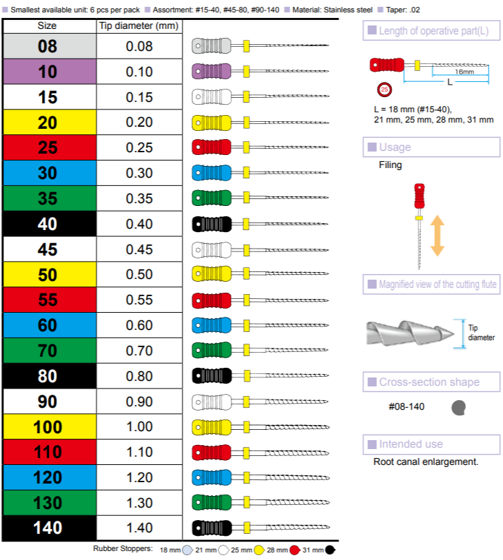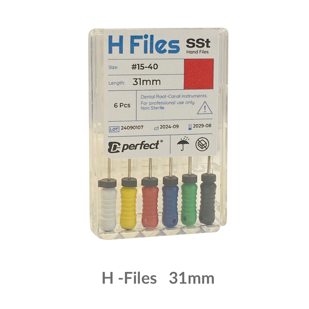 Hفایل طول 31-HFile:برای تمیزکردن و شکلدهی کانال ریشهو برش مؤثر در فرآیندهای دستی کاربرد دارد.محصولیارگونومیک باانعطافپذیری بالا میباشد.از استیل ضدزنگ ساخته شده است.طول فایل 31 میلیمتر میباشد.این محصول در بستهبندی 6 عددی و سایزبندی8، 10، 15، 20، 25، 30، 35، 40، 45، 50، 55، 60، 70، 80،40-15و 80-45عرضه میگردد.***** برای خریدفایل دستی دندانپزشکیبا بهترین قیمت کلیک کنید ******** خرید بهترینابزار دندانپزشکیبا کیفیتی تضمینی تنها در دندانت ****