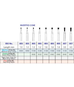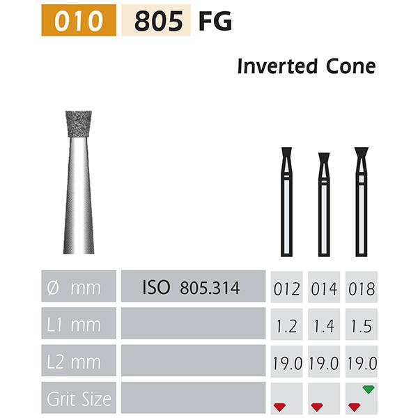 فرز الماسی مدل مخروطی معکوس توربین - Inverted Cone 805:فرزهای الماسی کمپانیلاستردنتساخته شده بامتریال فرانسویهستند. فرز کد 805در ایجاد فضاهای موازی ،صاف و 90 درجه و همچنیندر آماده سازی کست طلا ، تاج دندان و Inlay/Onlay کاربرد دارد. از دیگر ویژگیهای این فرز میتوان به خالی کردن پرکردگیهای طلایی اشاره کرد.فرز کد 805 با شکل مخروطی معکوس توربین در نوع Coarse قطرهای010C, 012C, 014C, 016C و 018Cدر بستههای 5 عددی درفروشگاه اینترنتی دندانتعرضه میشود.****خرید تجهیزات و لوازم دندانپزشکیبا بهترین کیفیت و مناسب ترین قیمت از سایت دندانت ****